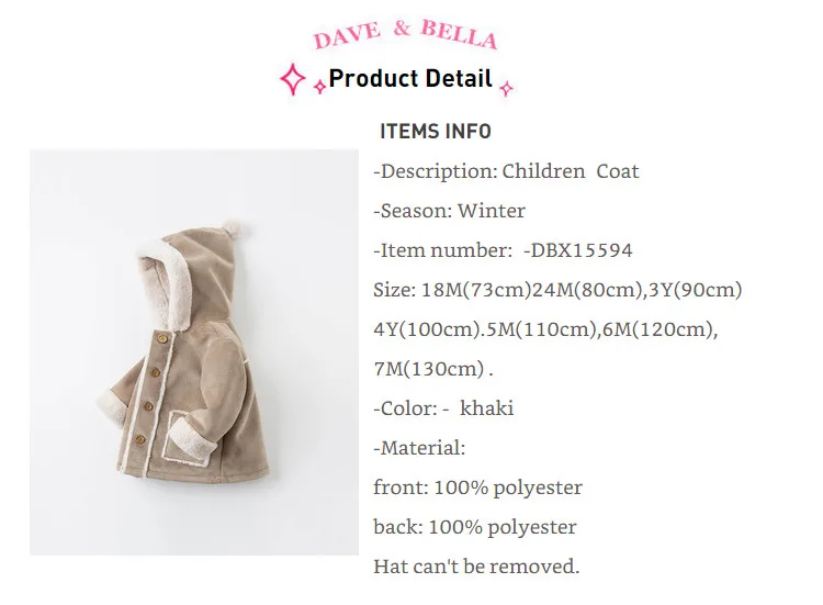 DBX15594 dave bellaзимнее модное пальто с капюшоном и рисунком для маленьких мальчиков; Детские топы; Верхняя одежда для малышей
