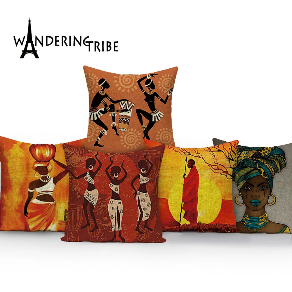 Африканские Этнические Подушка с изображением женщины крышка Африканское украшение подушки Чехол льняная танцевальная домашний Декор диванные подушки Чехол для дивана Cojin