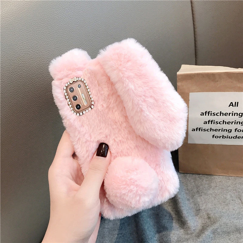 Силиконовый чехол с пушистым кроликом, плюшевый чехол для телефона Motorola MOTO G9 Play, силиконовый чехол с пушистым кроличьим мехом для MOTO G9 Plus, чехлы