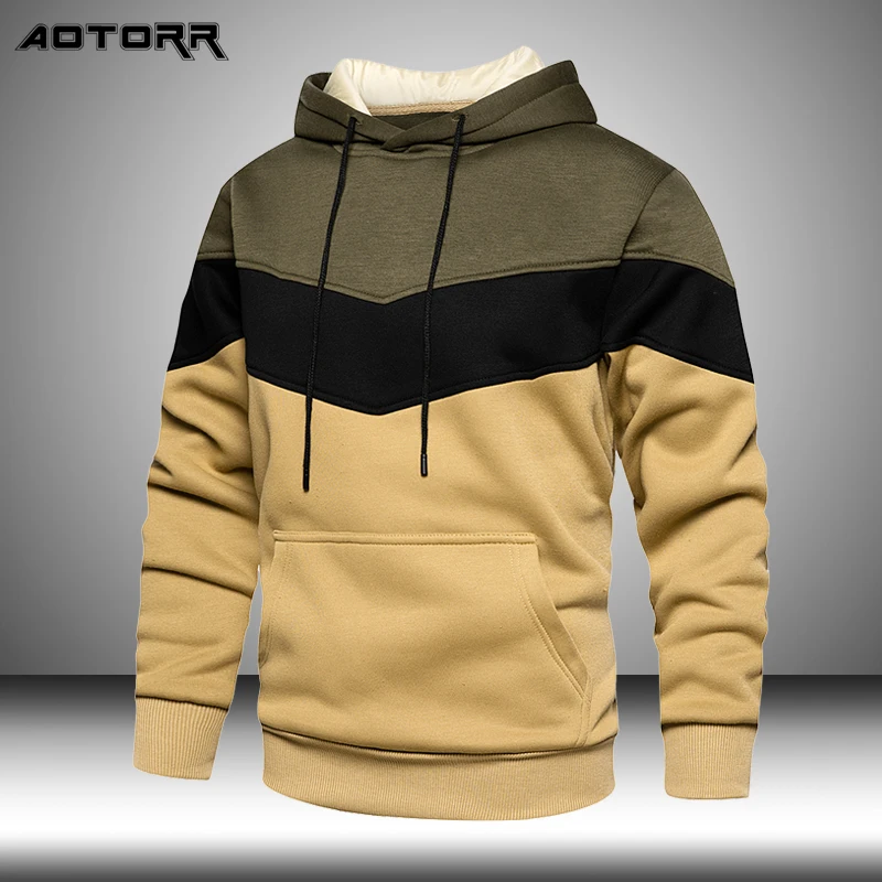 Мужской свитшот с капюшоном, в стиле хип-хоп, теплая контрастная спортивная одежда, 2021