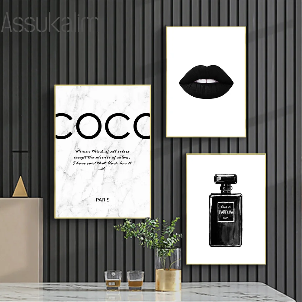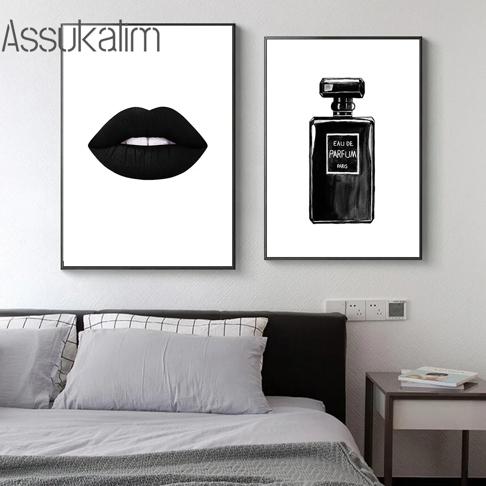 Плакат с изображением флакона духов и губ, Скандинавская Картина на...