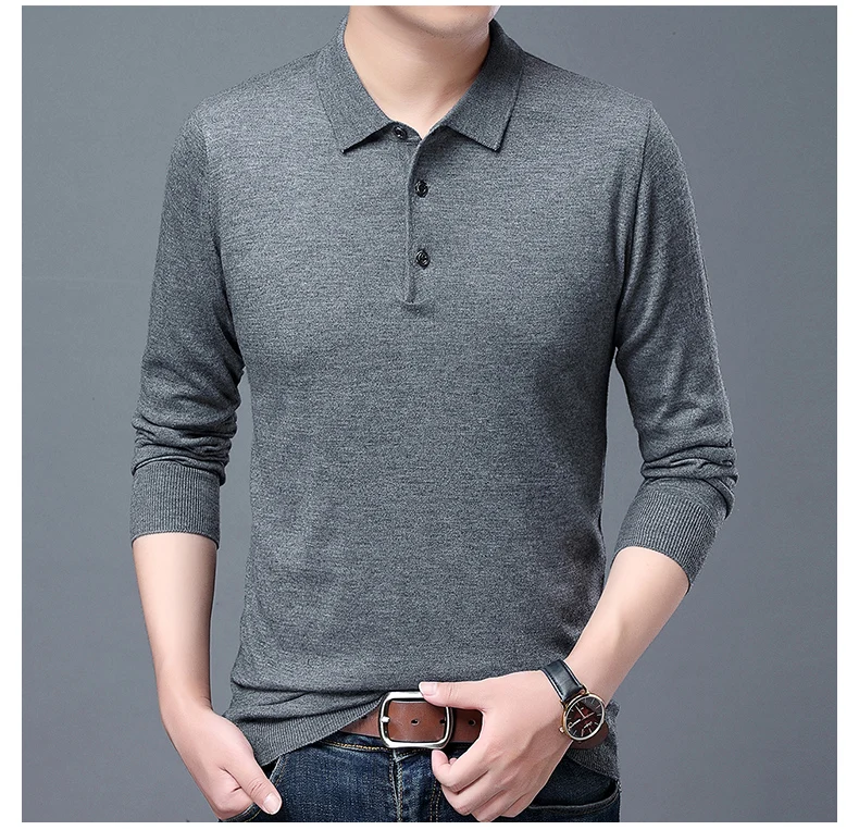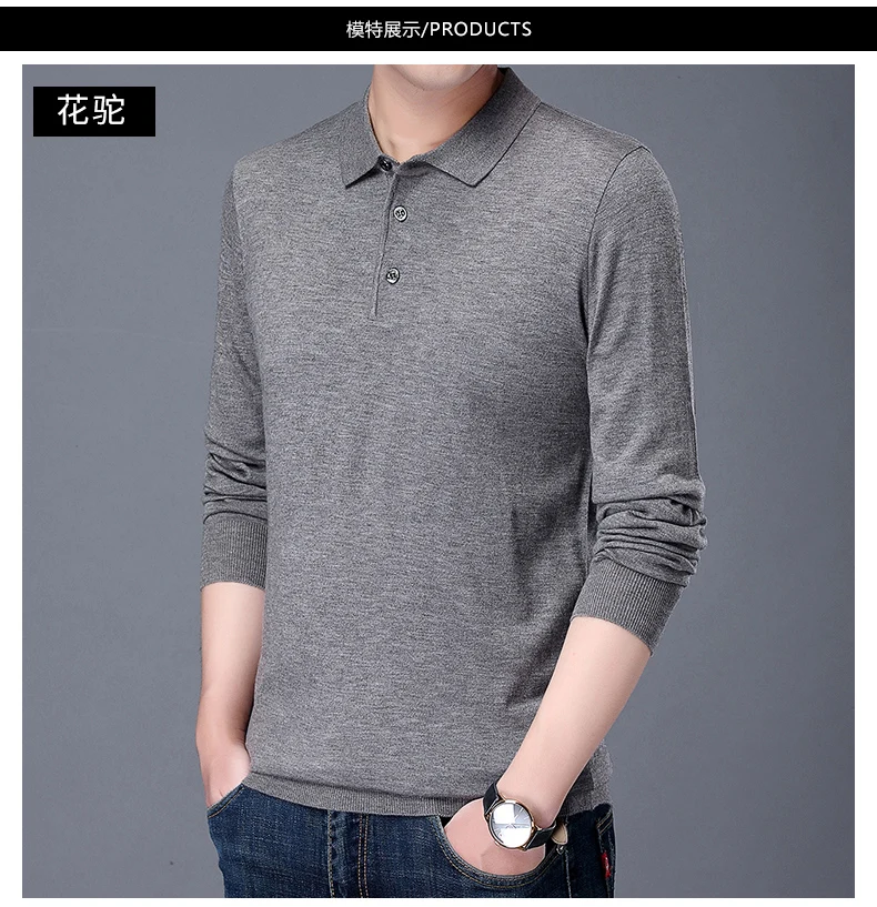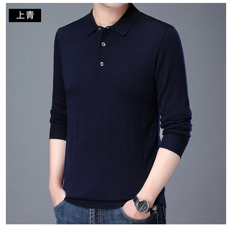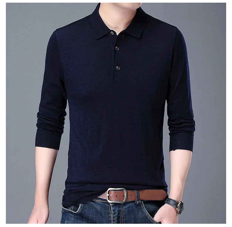 Рубашка-поло мужская с длинным рукавом, 100% хлопок, 2021