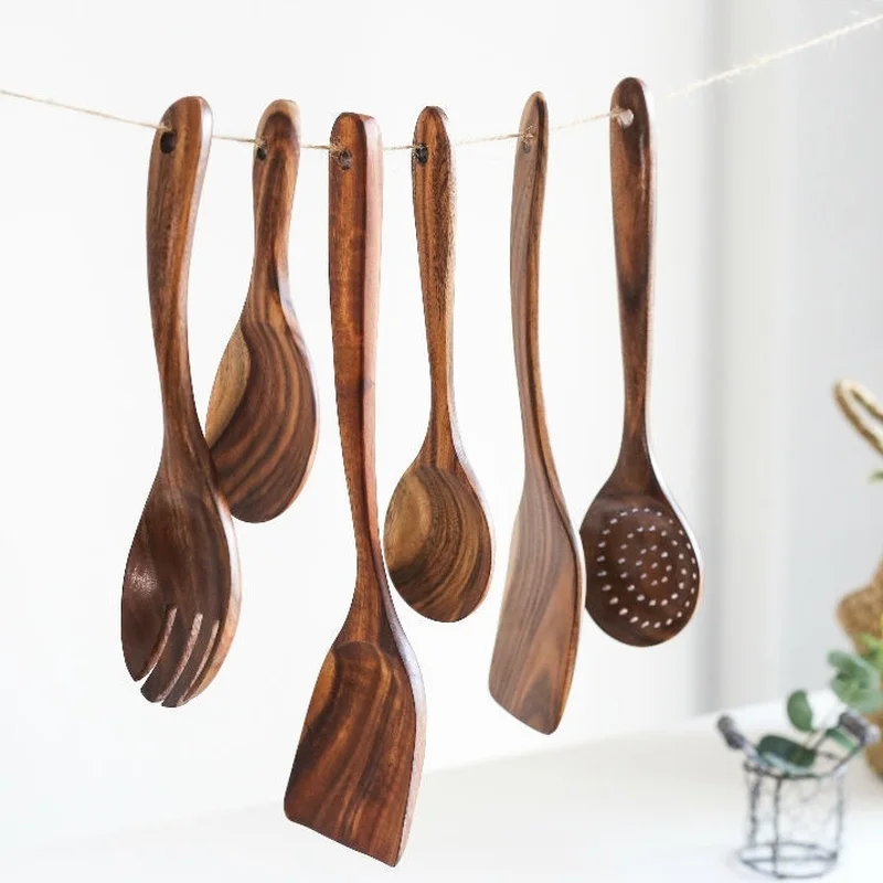 7 шт.компл. натуральное тиковое дерево антипригарный набор кухонных...