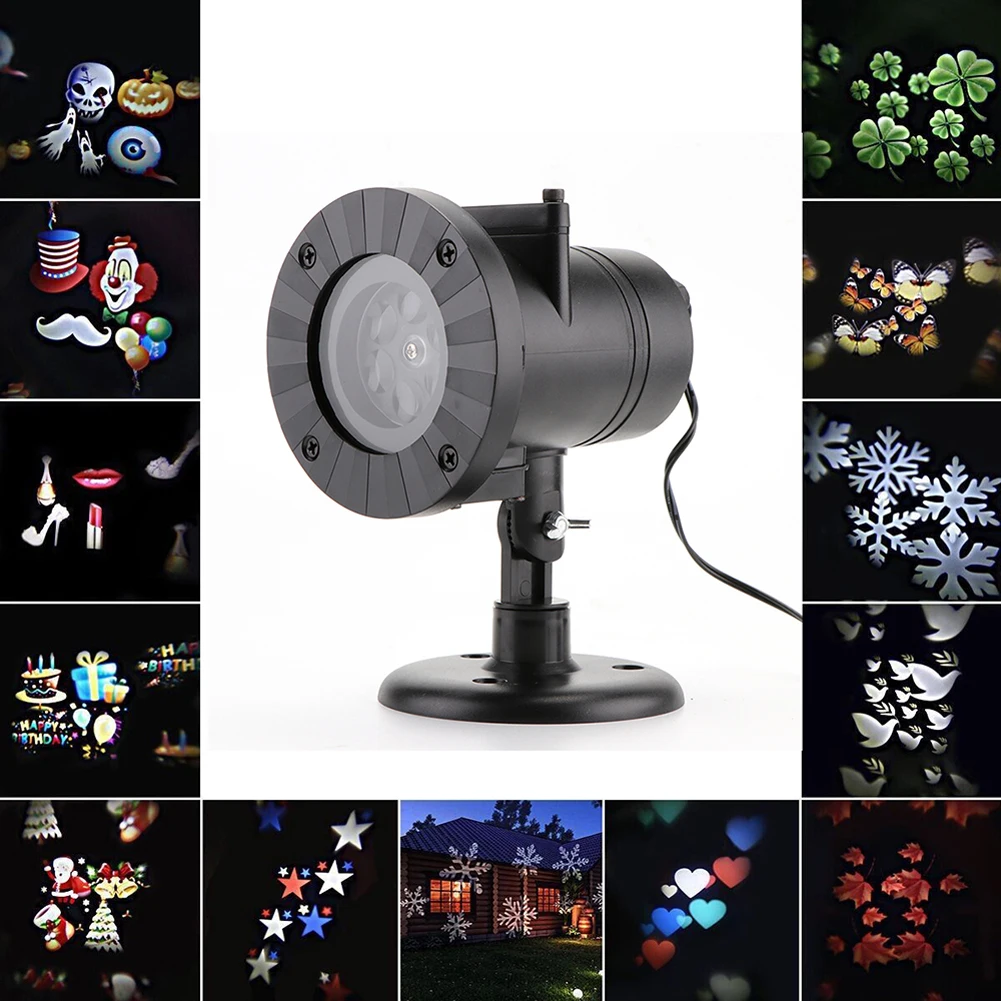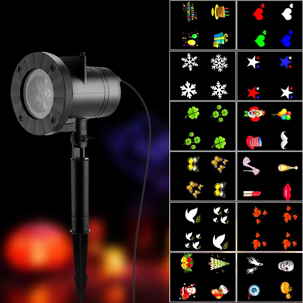 12 узоров Рождественский лазерный Снежинка проектор Хэллоуин светодиодный водонепроницаемый дискотечный светильник s домашний сад Звездный светильник украшение для помещений