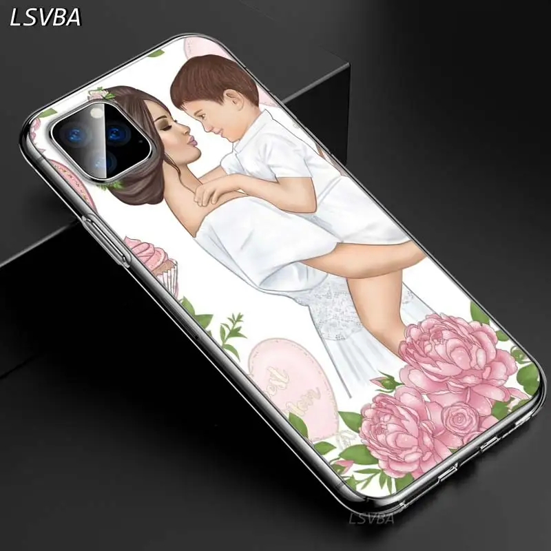 Силиконовый ТПУ чехол для телефона с красивой мамой, милым дочерним сыном для iPhone 12 11 XS Pro Max Mini XR X 8 7 6 6S Plus 5 SE 2020