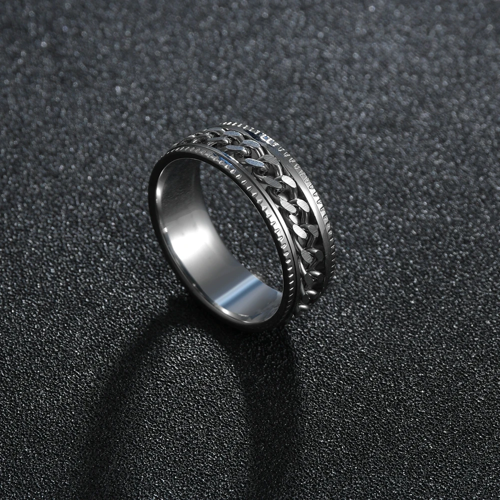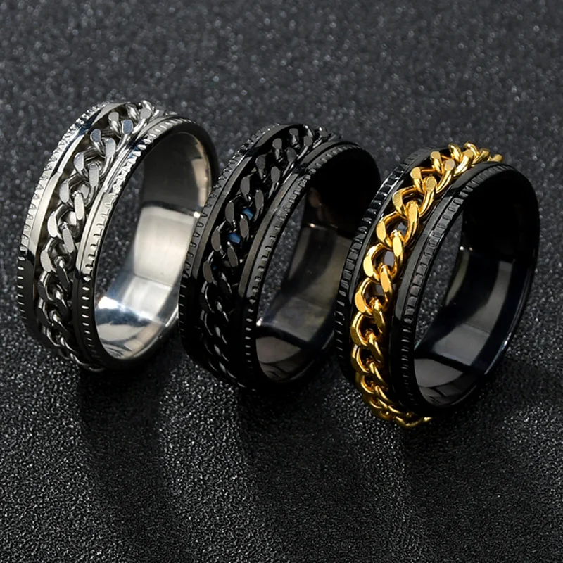 Мужское и женское кольцо, из нержавеющей стали, с вращающейся цепоч...