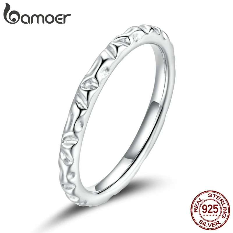 Bamoer 925 пробы серебряные маленькие маргаритки перстни для женщин простой текстуры кольца серебряные Изящные Ювелирные изделия BSR152