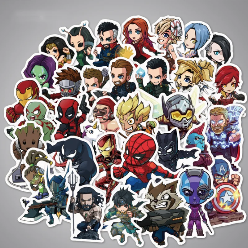 Чехол на колесиках, 103050 шт., коллекция супергероев, милый мультяшный автомобиль, водонепроницаемая гитара граффити скейтборд, наклейки, оптовая продажа