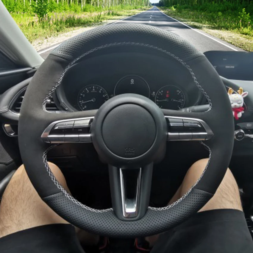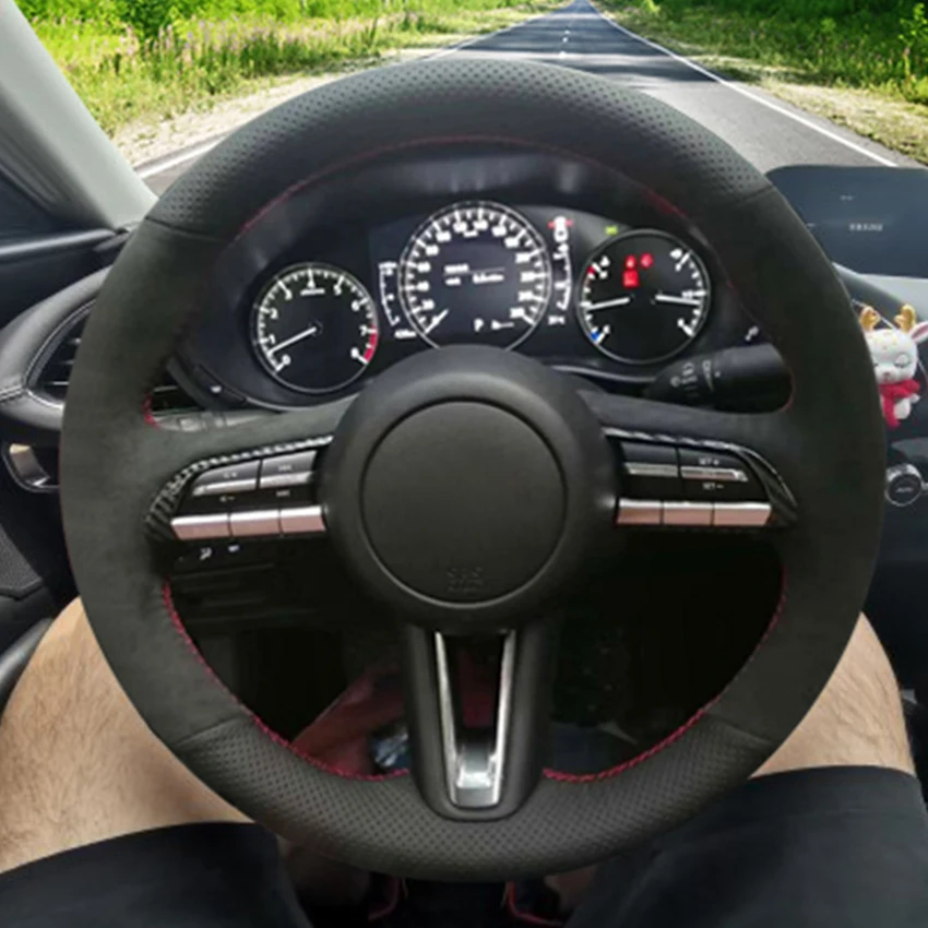 LQTENLEO черный из натуральной кожи Замша ручной шитья чехол рулевого колеса автомобиля для Mazda 3 Axela 2019 2020 CX-30 2020 MX-30 2020