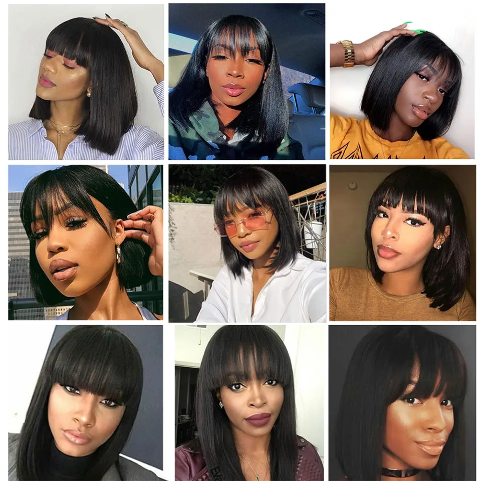 Парик Tinashe Beauty с короткой челкой, для женщин, бразильские дешевые прямые человеческие волосы Remy с челкой, парик для машинной стрижки Пикси