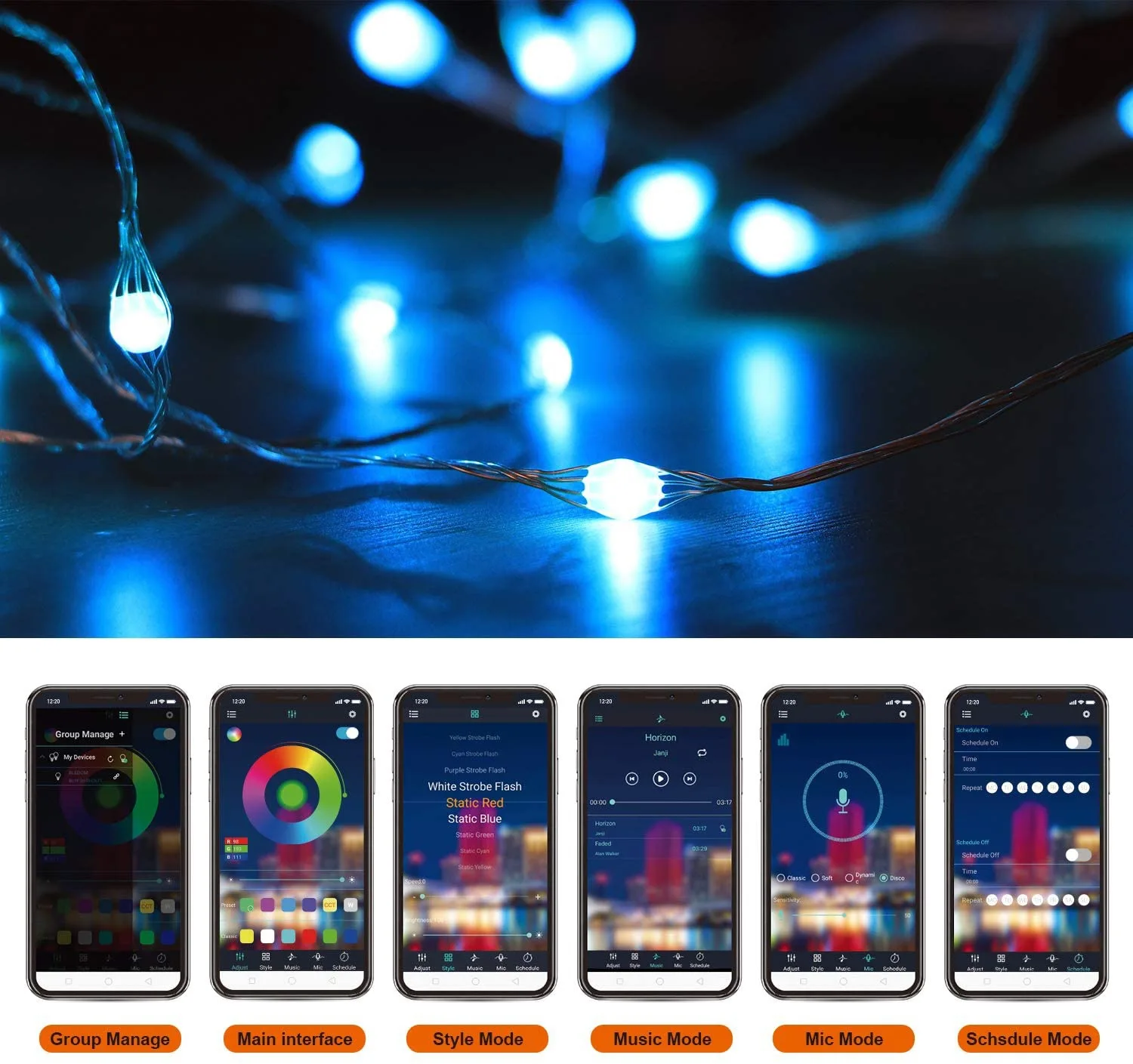 Уличная гирлянда RGB с Bluetooth и управлением через приложение