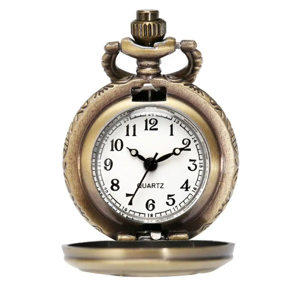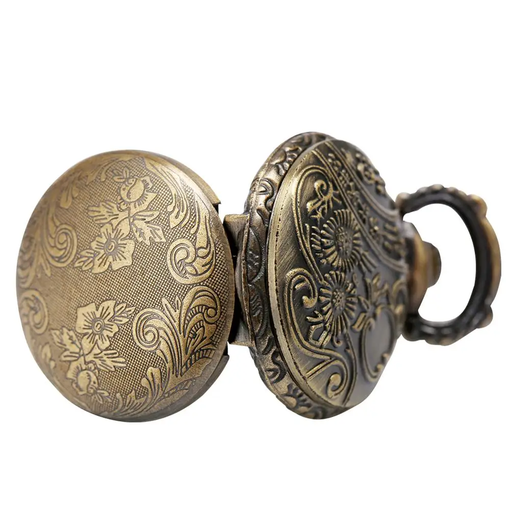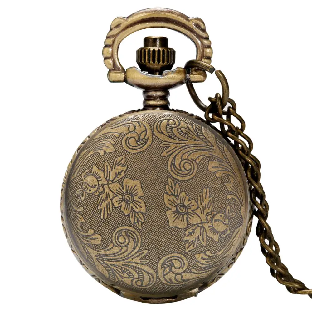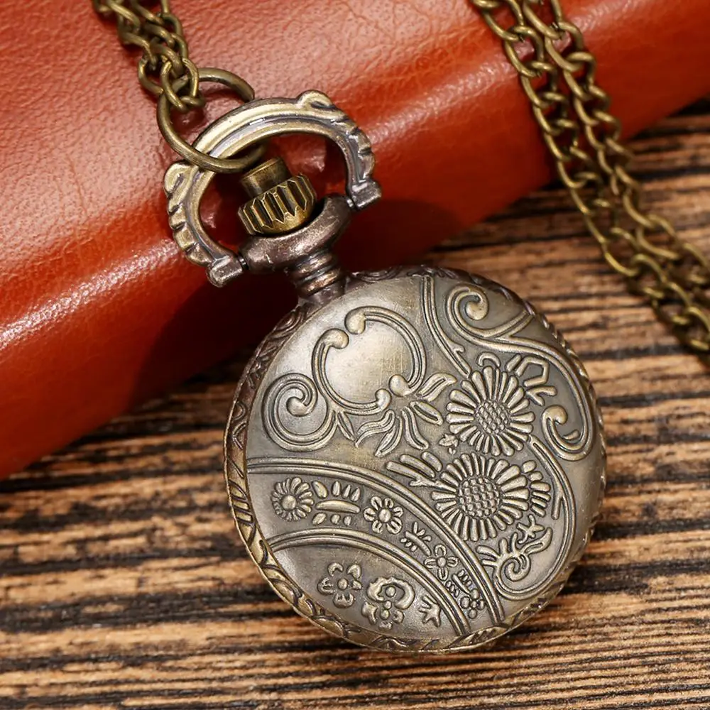 Часы наручные маленькие для мужчин и женщин, простые бронзовые кварцевые карманные часы с цепочкой из ротанга и цветочным принтом, Минималистичная подвеска на цепочке