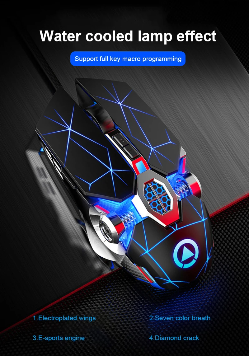 Светильник с водяным охлаждением и семицветный светильник с черным светом, игровая мышь красивая и классная.