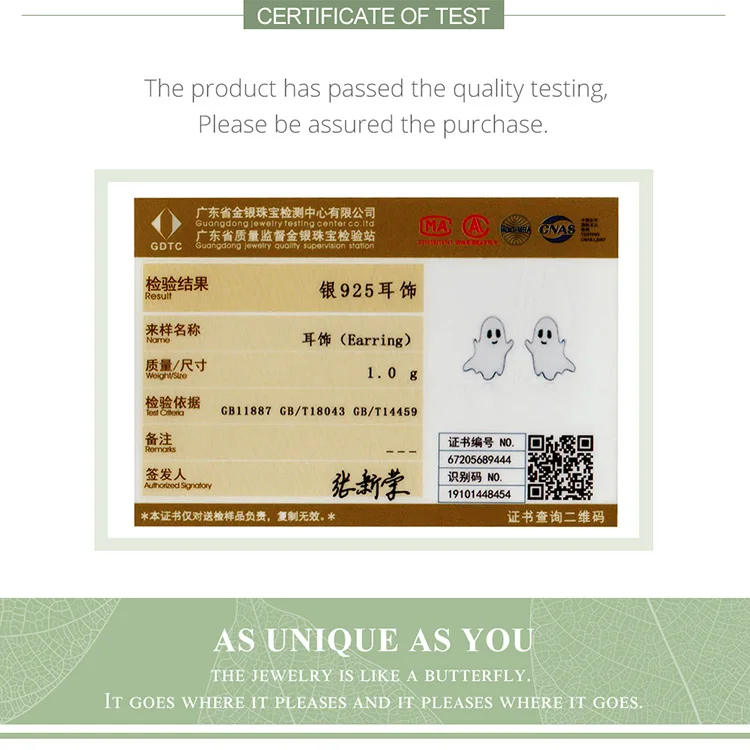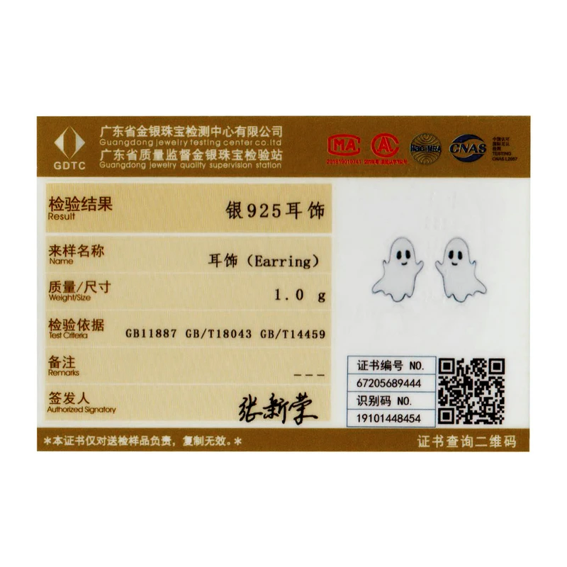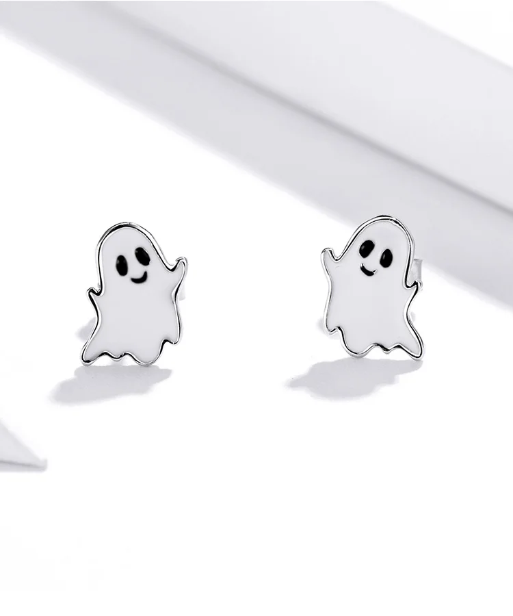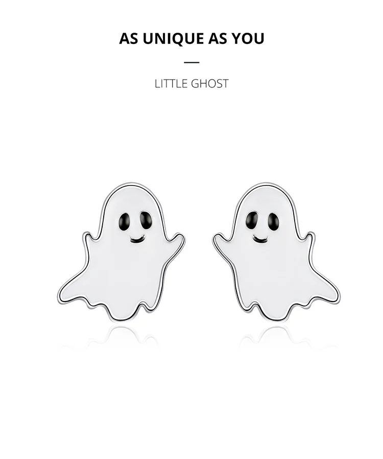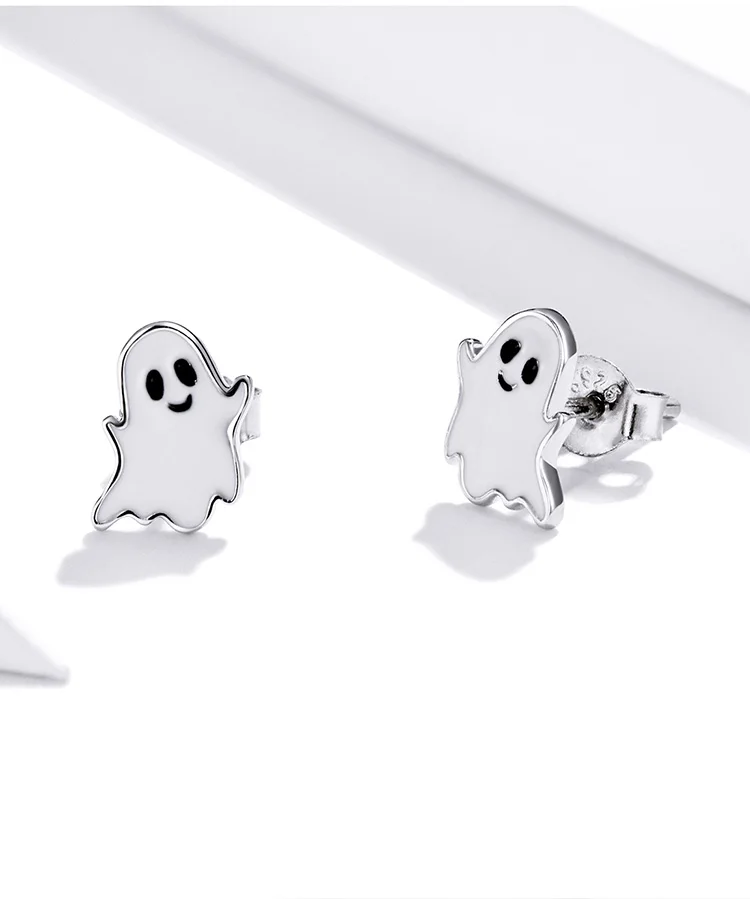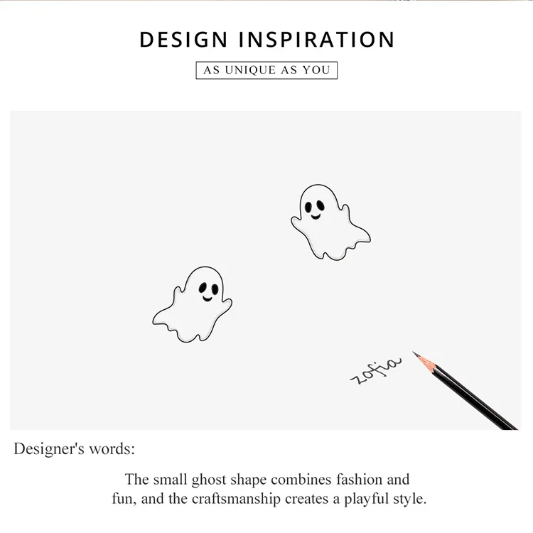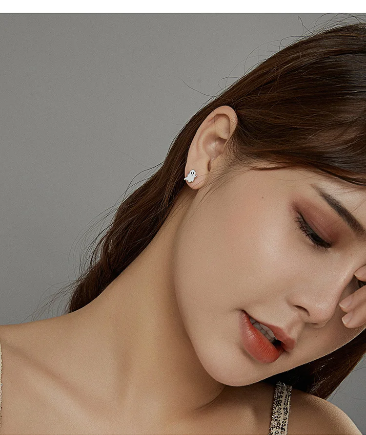Размер: 0,9*0,6 см S925 + покрытие платина + эмаль процесс Маленькая форма призрака сочетает в себе моду и веселье, а мастерство создает игривый стиль.