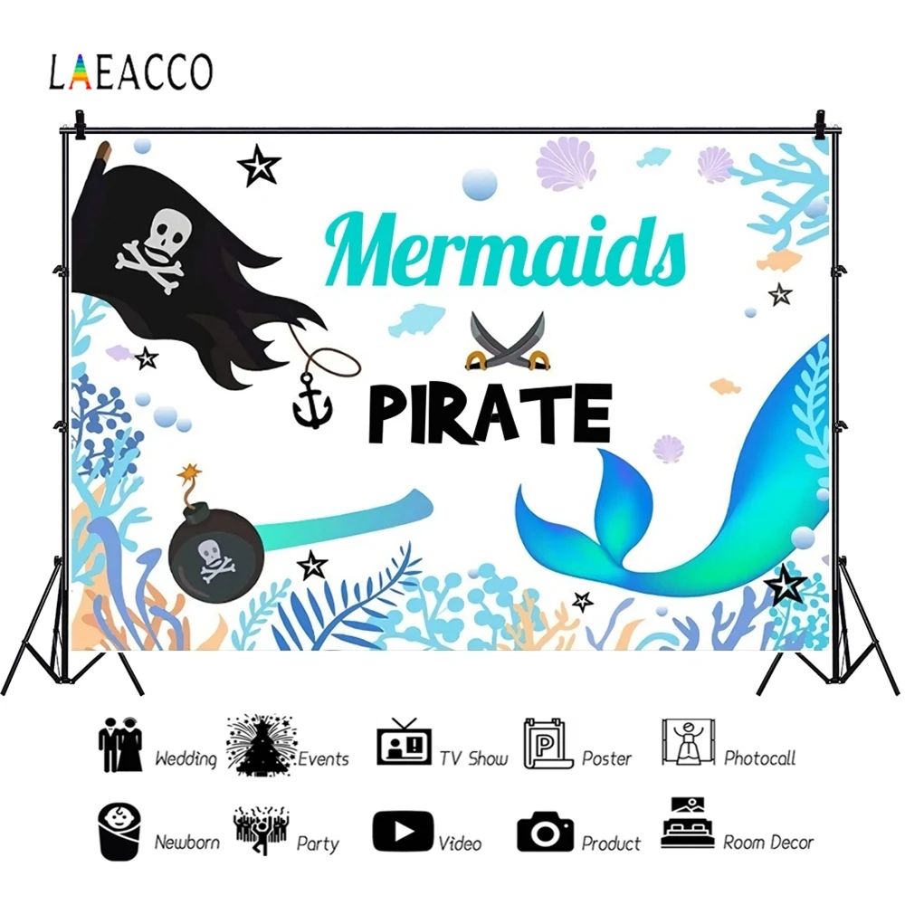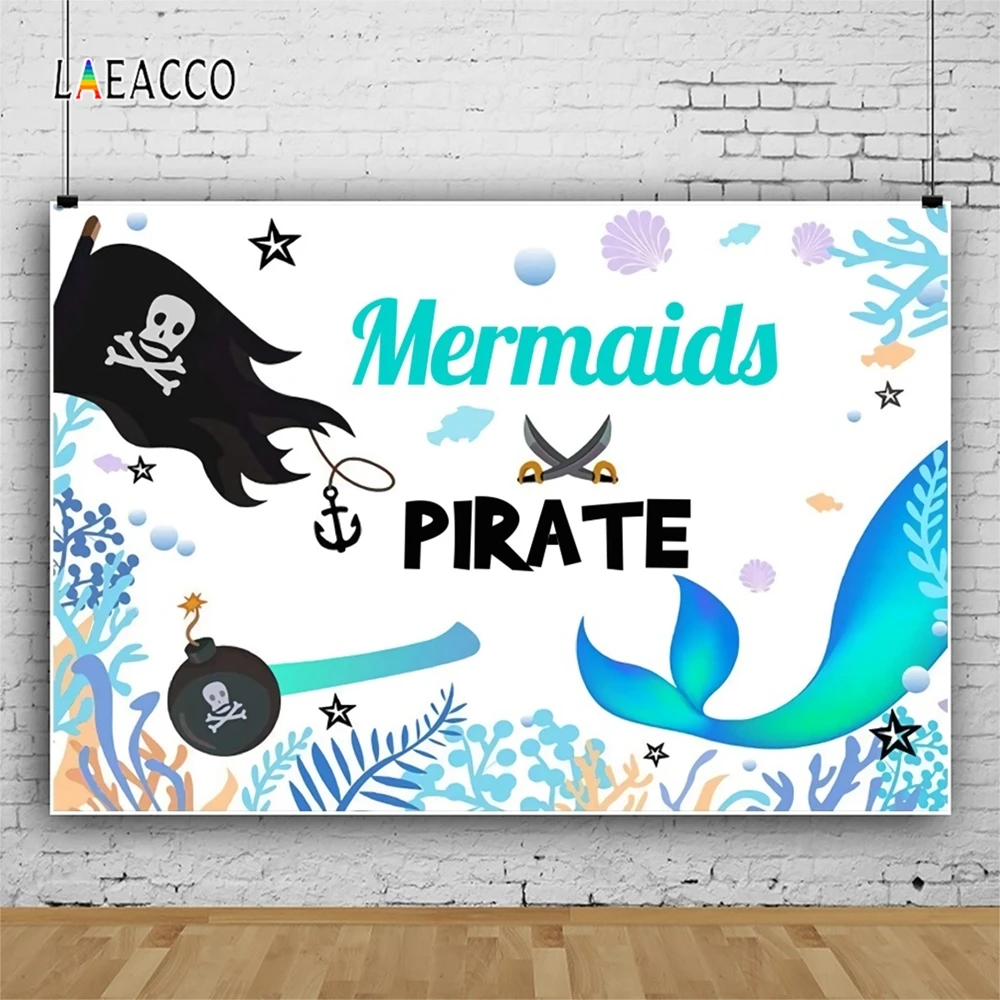 Фотофоны Laeacco с изображением пиратского корабля, черепа, флага, морских водорослей, жемчуга, для детских фотографий, реквизит для фотосессии