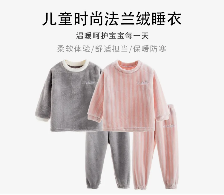 Осенне-зимний детский пижамный комплект для мальчиков, фланелевые пижамы для девочек, утепленные теплые пижамы, Детская одежда для сна для подростков 2-12 лет