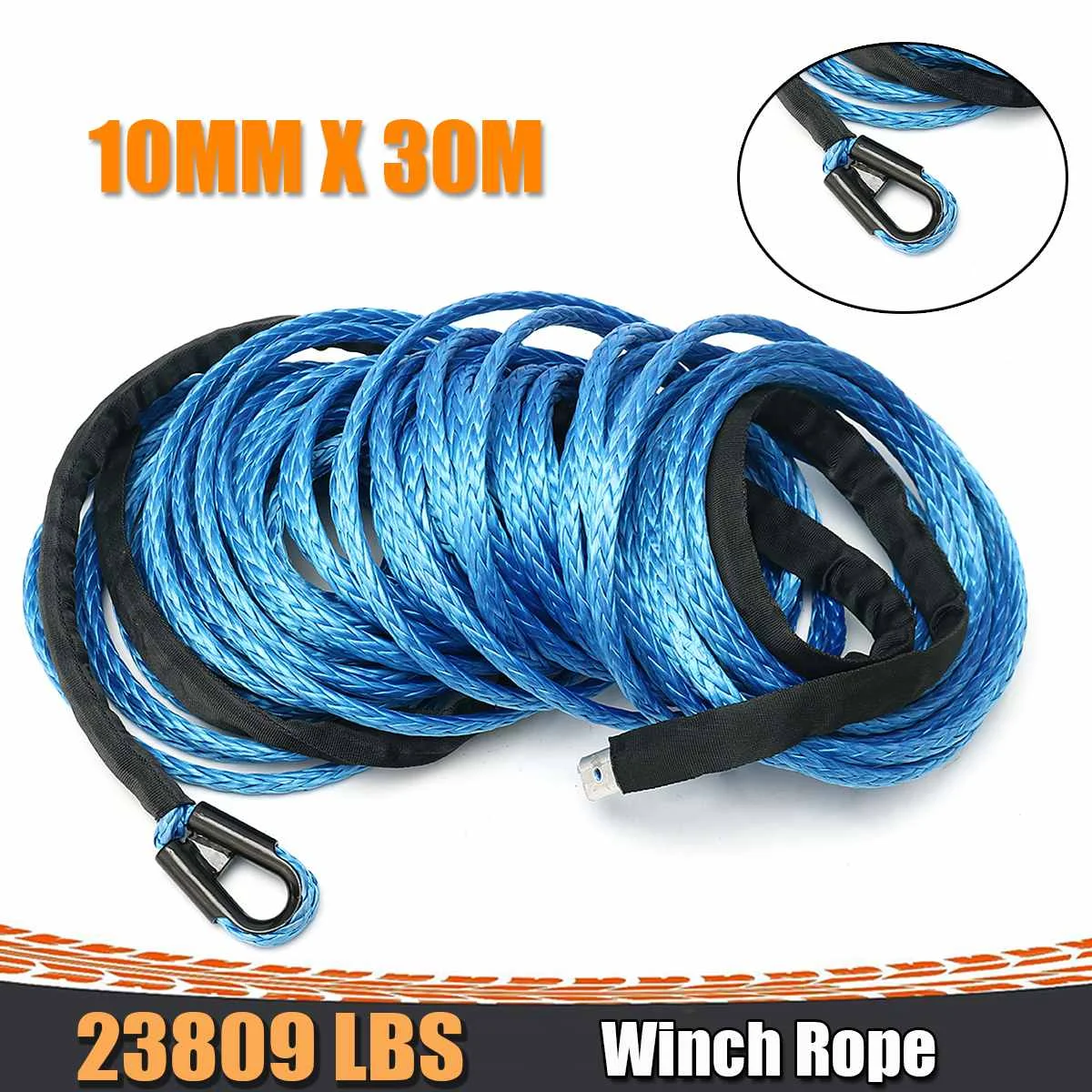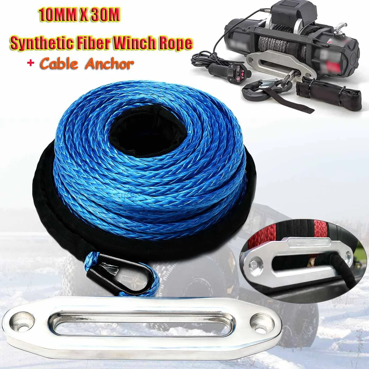 Новая синяя лебедка 10 мм X 30 м, буксировочный трос, веревка из синтетического волокна, плазменный трос с якорем для 4x4 внедорожника