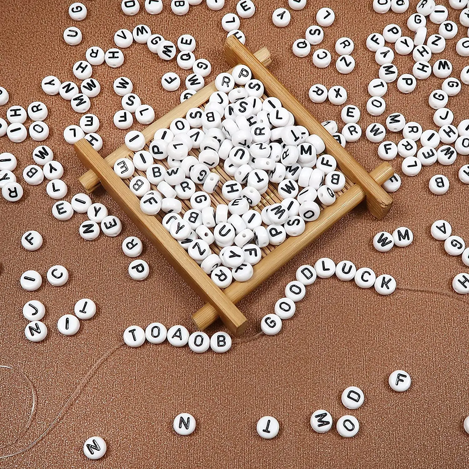 Бусины для изготовления ювелирных изделий, разноцветные, круглые акриловые бусины, с плоским алфавитом