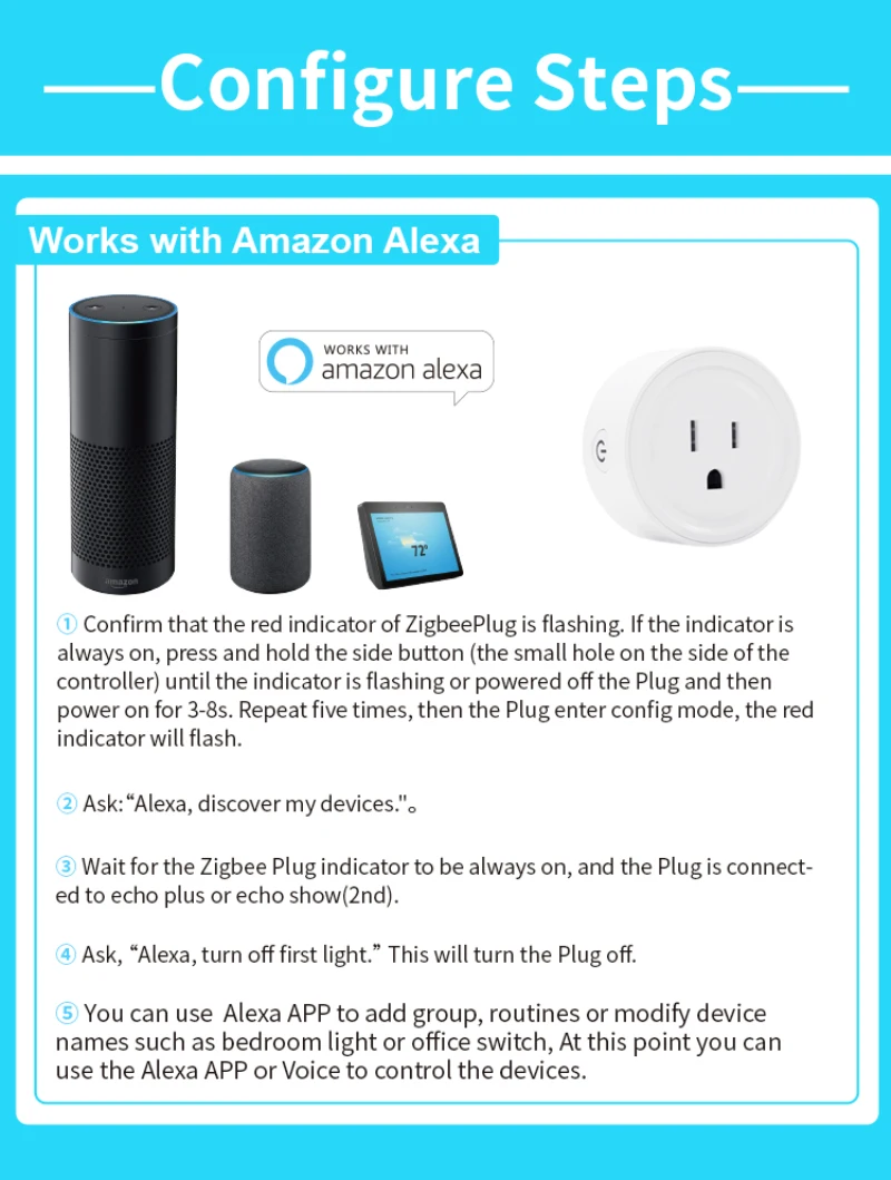Без других концентраторов Zigbee, напрямую поддерживает Amazon Echo Smart Speaker для настройки контроллера.