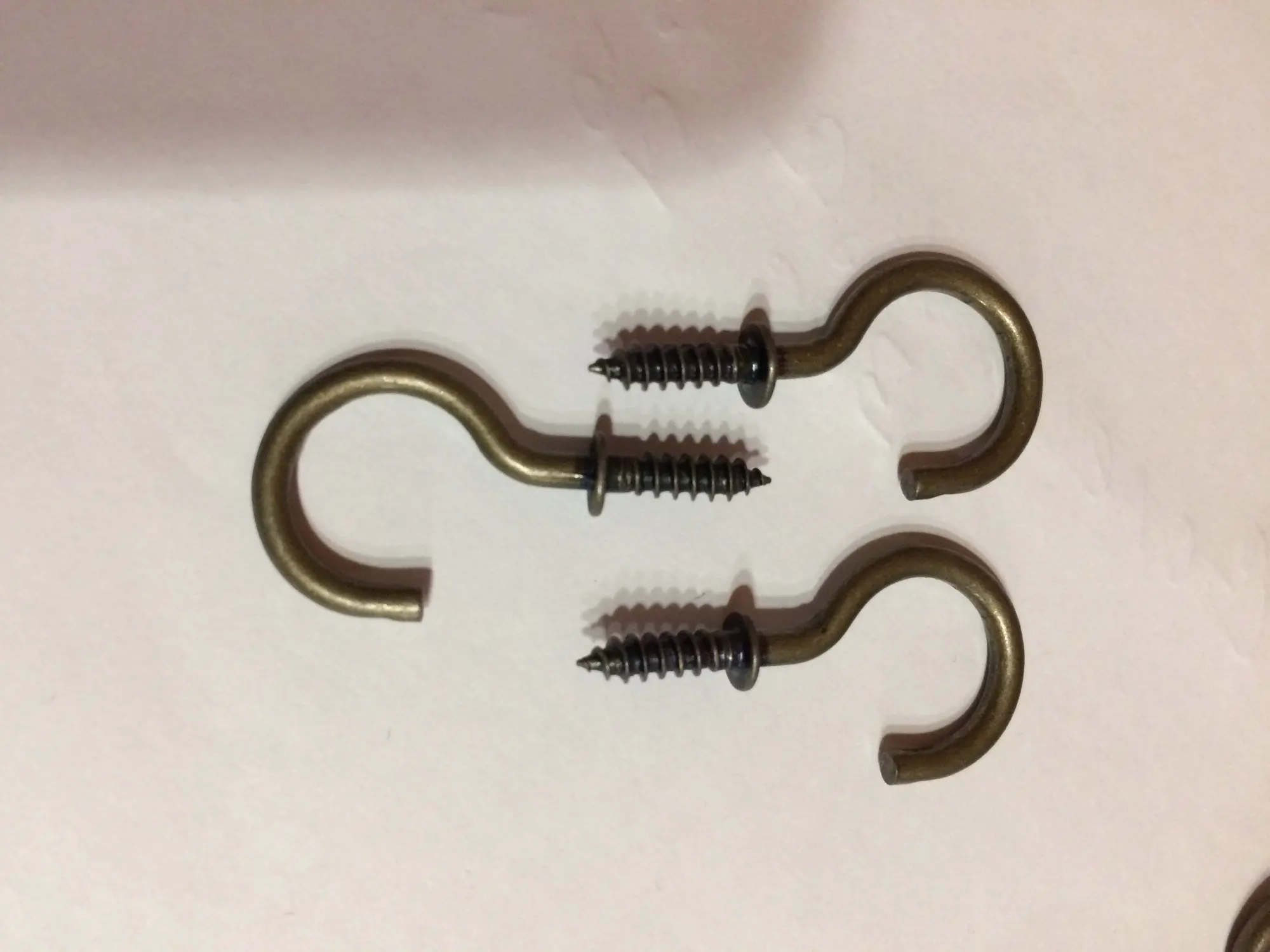 Крючочки пришли быстро, за 3 недели. Хорошие, качественные. Нижняя часть с резьбой длиной 1,1 см . Попробовала закрутить в ключницу - закручивается хорошо, только резьбовую часть придется укоротить, длинновата. Не нашла таких крючков с более короткой резьбовой частью. А так крючки хорошие, брала под серебро и бронзу. Спасибо продавцу.