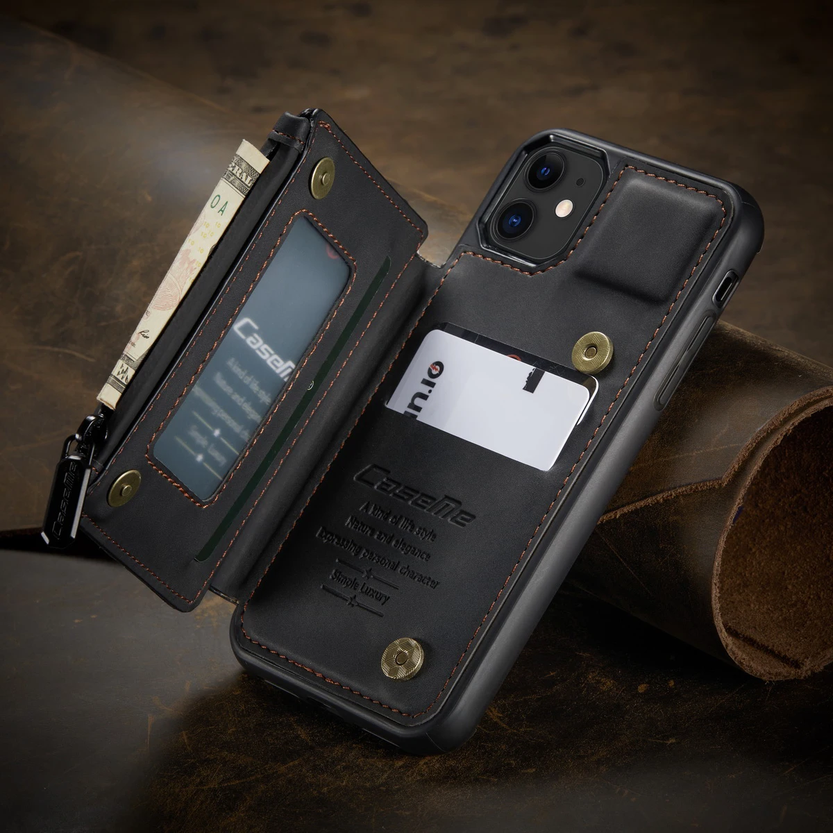 Чехлы-бумажники на молнии, кожаный чехол-накладка для iPhone 12, защитный чехол с RFID-блокировкой и отделениями для карт для iPhone 11 Pro, X, XR, XS Max, SE 2020
