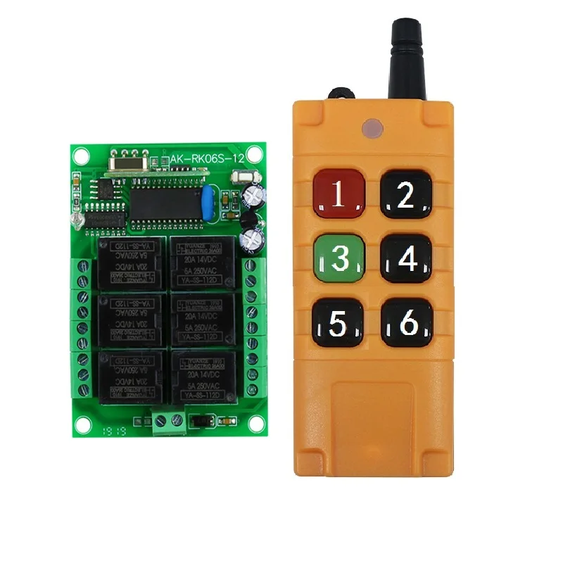 Промышленный беспроводной релейный выходной радиопередатчик 2000 м, 12 В постоянного тока, 24 В, 6 каналов, релейный выход, радиочастотный передатчик, приемник 315433 МГц