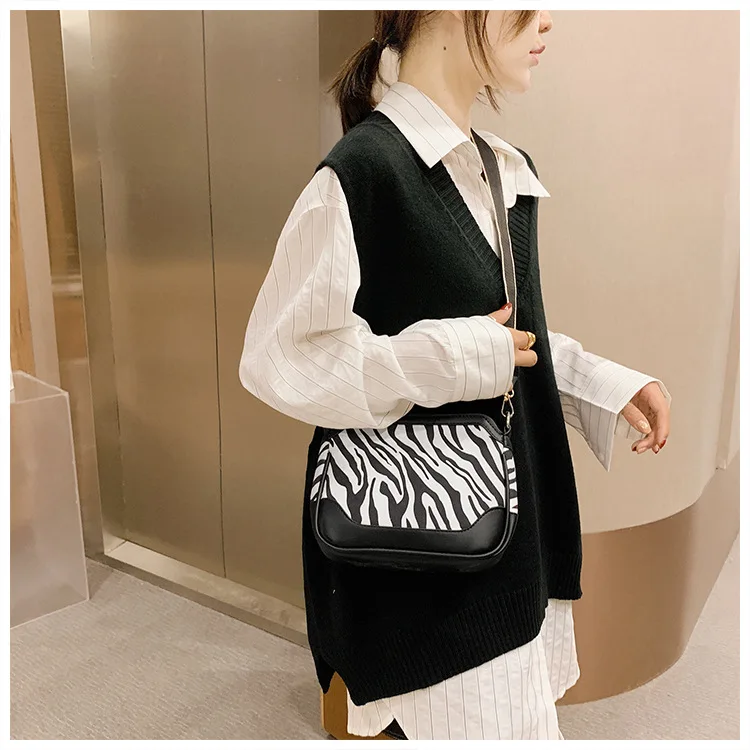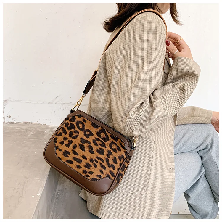 Винтажные леопардовые сумки через плечо из искусственной кожи для женщин, зимняя трендовая дизайнерская маленькая сумка через плечо в полоску, Брендовые женские сумки