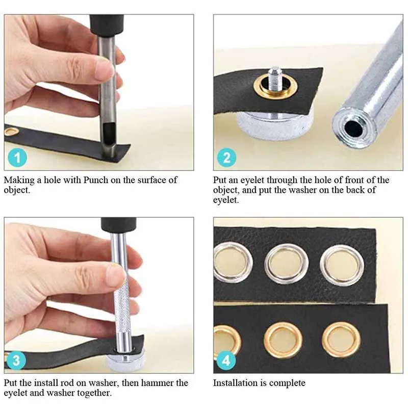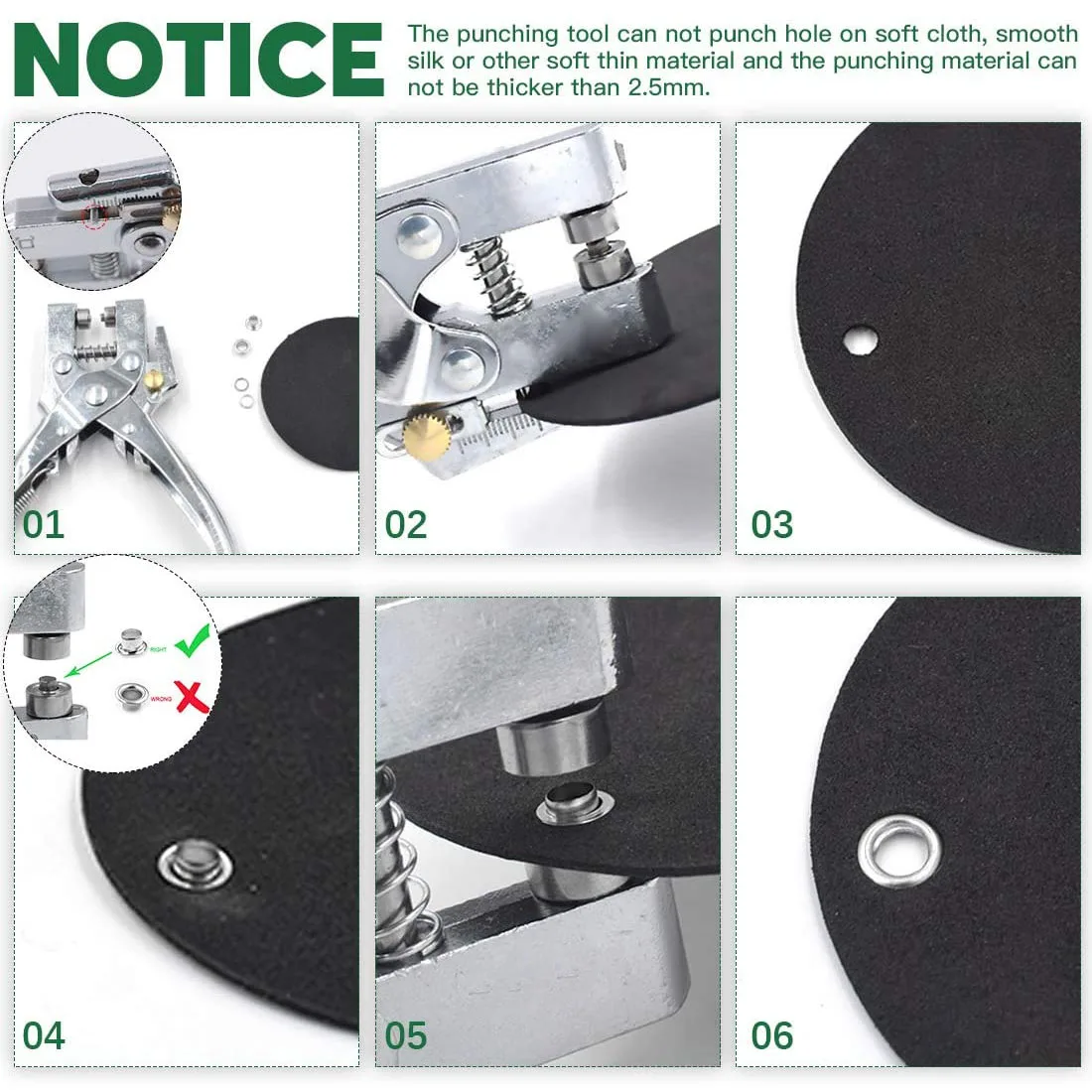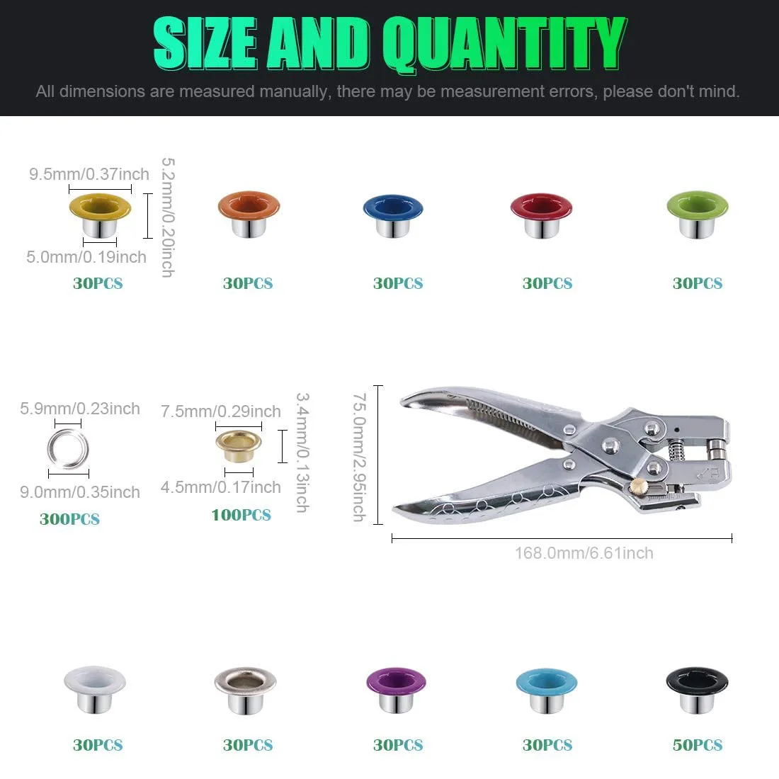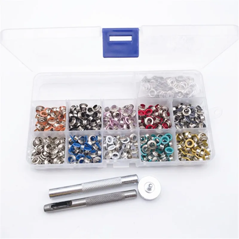 Набор для втулки, 500 наборов инструментов, металлическая втулка Набор для проушин с установочным набором инструментов в коробке для хранения, изделия из кожи, поделки
