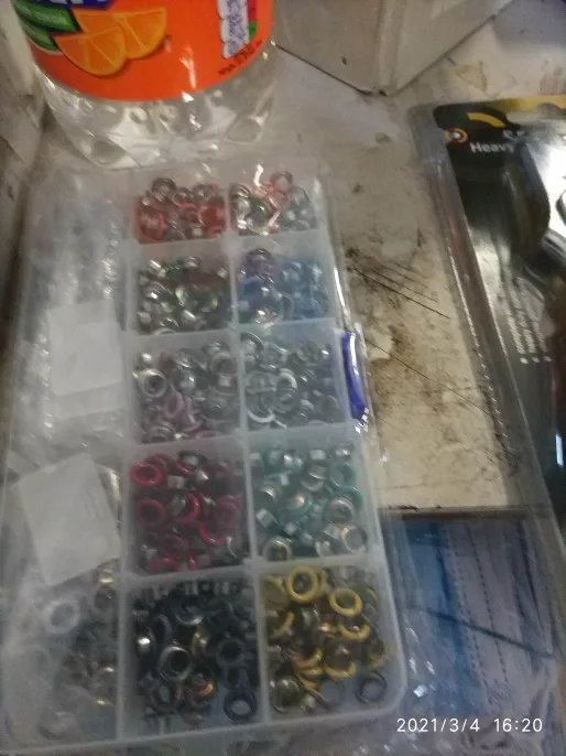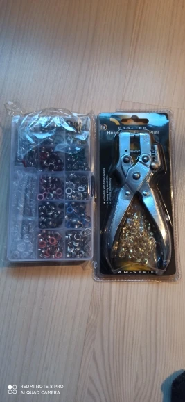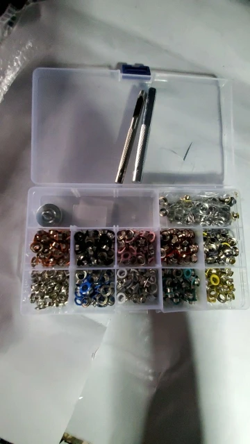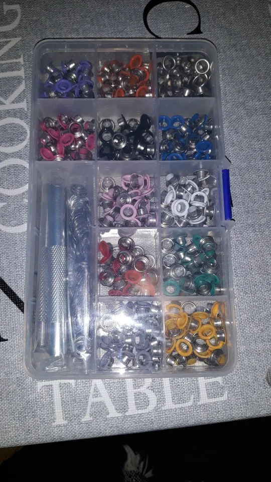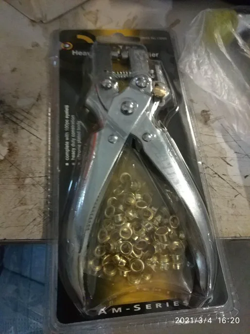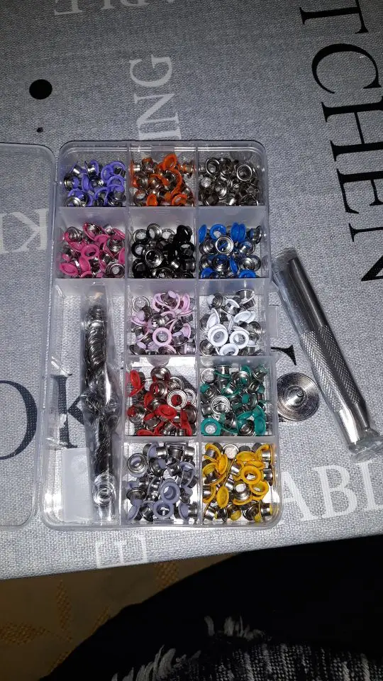 Посылка прибыла в Липецк за 12 дней!!! Полностью отслеживалась. Пришла с актом о повреждении упаковки, но содержимое в целости и сохранности! Люверсы хорошо окрашены, при установке покрытие не стирается, с обратной стороны край аккуратно заворачивается, не рвётся. Пробойник тупой, отверстие пришлось делать ножницами, но в целом я очень довольна! Спасибо продавцу, рекомендую