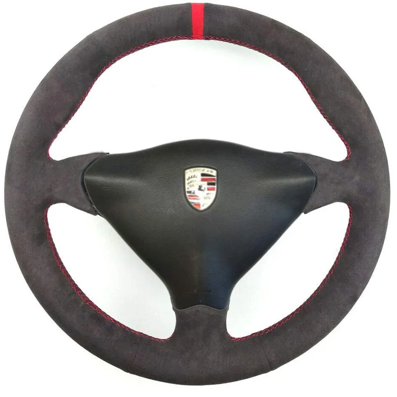 Сделай Сам, черный замшевый Кожаный руль, красный стежок на обертке, чехол, подходит для Porsche 911 986 996 Carrera Boxster S 1998-2004