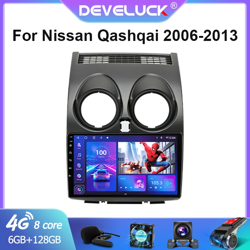 Автомагнитола 2 Din, Android 10,0 для Nissan Qashqai 1 J10 2006-2014, 6 + 128 ГБ, GPS-навигация, мультимедийный видеоплеер