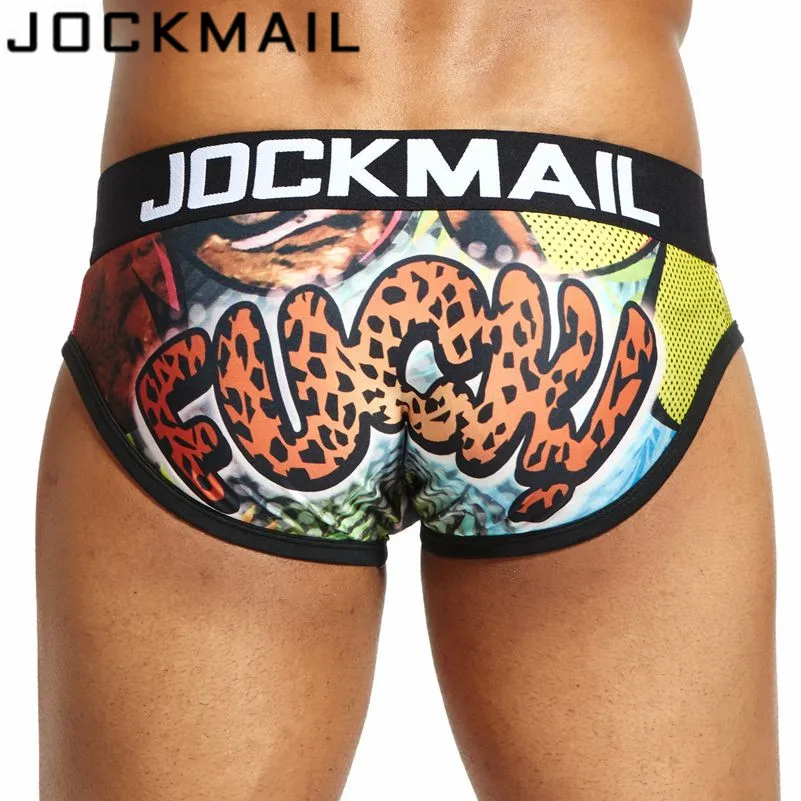 Jockmail трусы, мужское нижнее белье, сексуальное нижнее белье с мультяшным принтом, мужские трусы, Calzoncillos Hombre, нижнее белье с низкой талией, шелк со льдом, дышащие