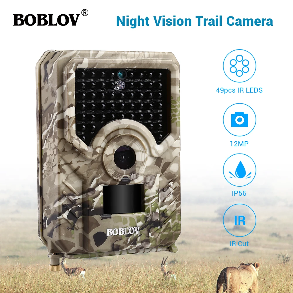 Охотничья камера BOBLOV PR200, 12 МП, 49 светодиодов, водонепроницаемая уличная камера видеонаблюдения за дикой природой, фотоловушка с поясом