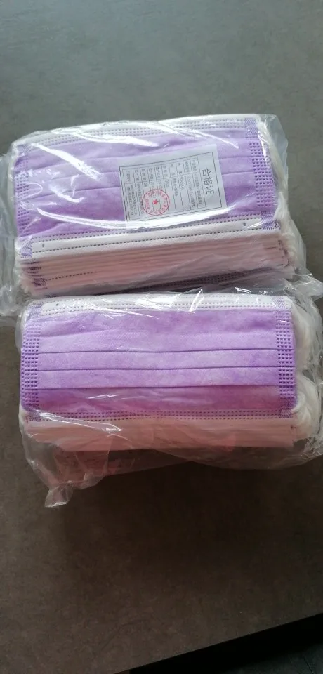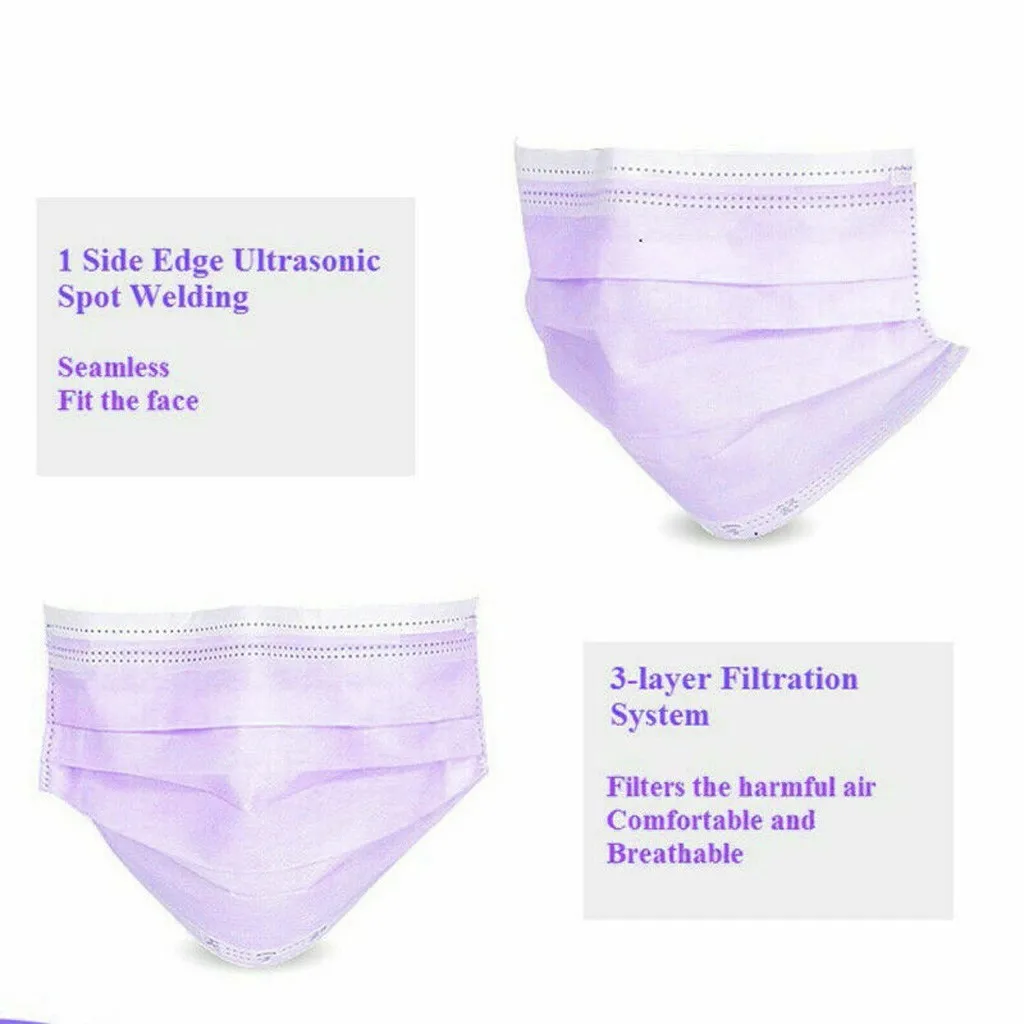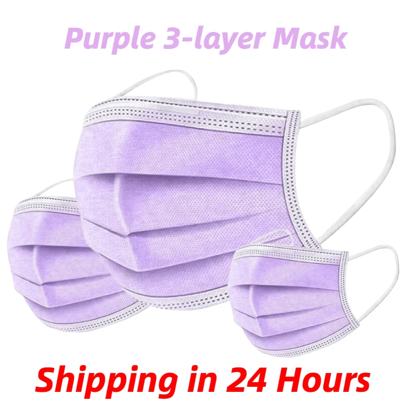 Одноразовая Нетканая 3-слойная маска для лица, дышащая маска с эластичными петлями для ушей, 1050100200 шт., фиолетового цвета