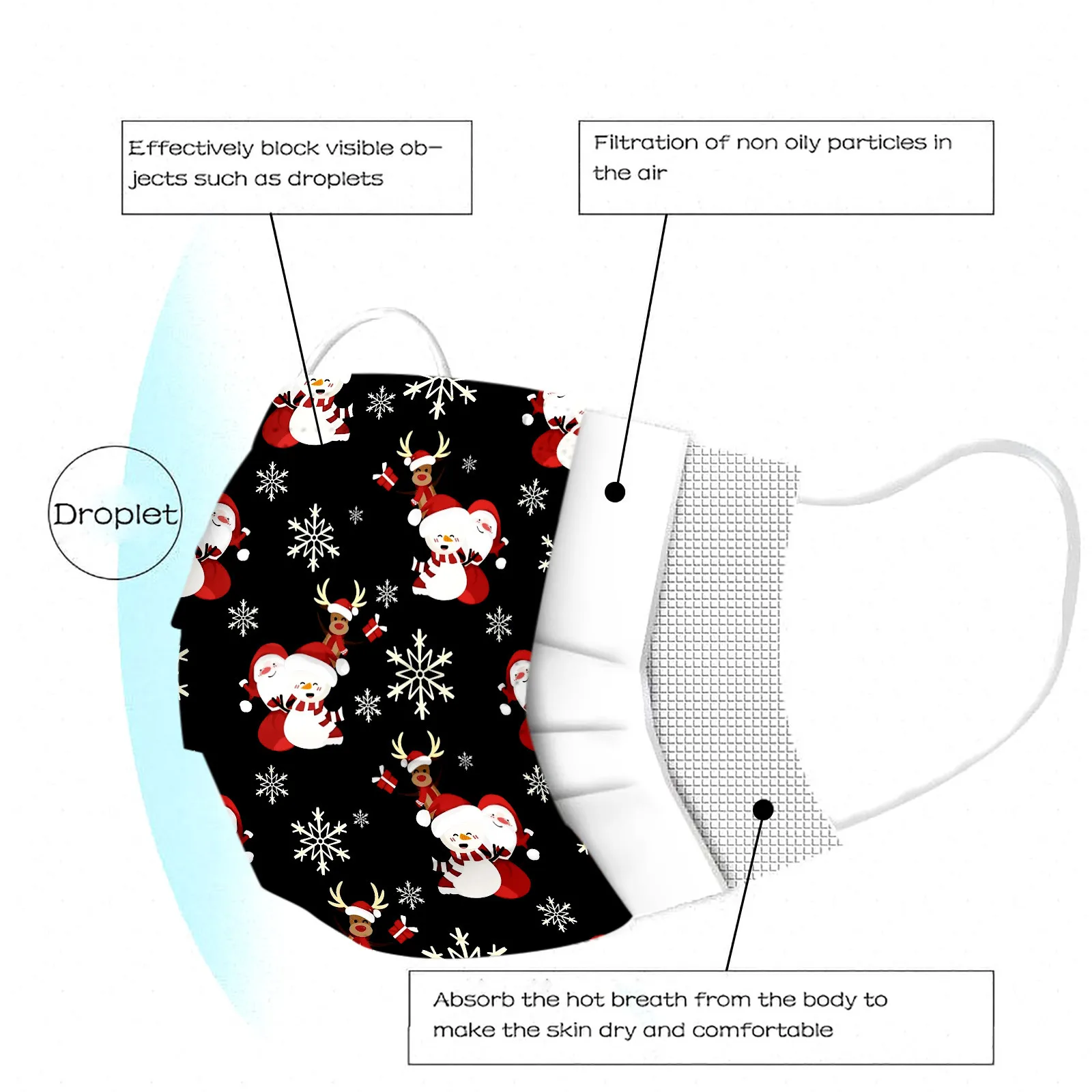 Одноразовая маска для лица с рождественским принтом, маска для взрослых, трехслойная Пылезащитная маска, Нетканая ткань, маска для ушей