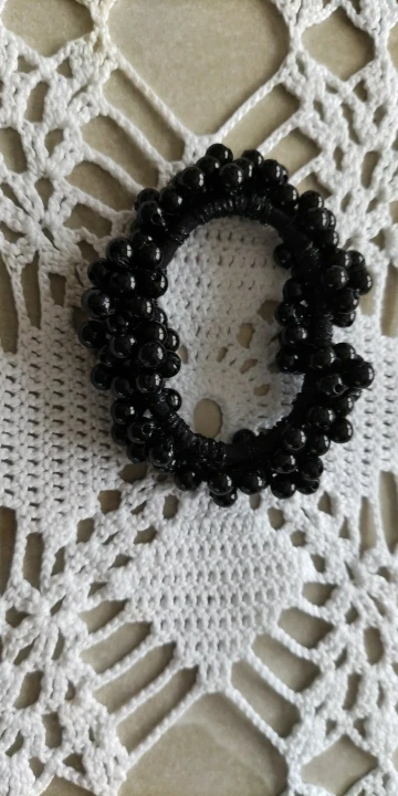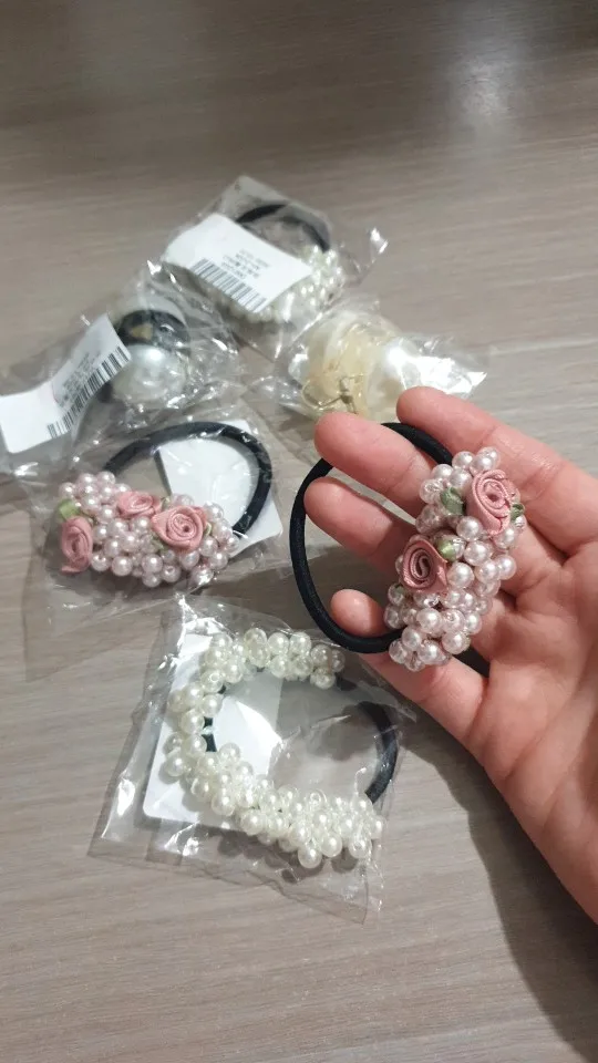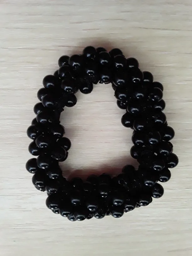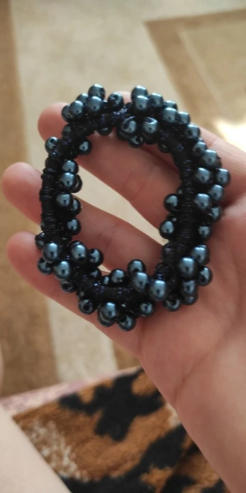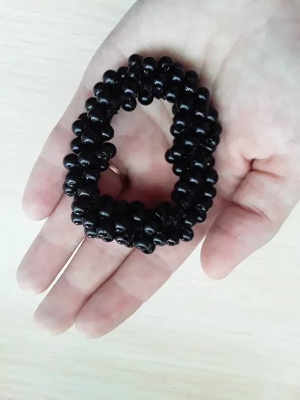 Резиночки не сильно большие,ожидала более крупные бусины. Держат волосы хорошо. Цвет всё же отличается от картинок.