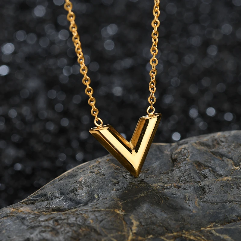 Имя: Diamon 2020 новое простое ожерелье из нержавеющей стали с V-образным вырезом для женщин ожерелье с подвеской-буквой кеттинг дружба подарки женские ювелирные изделия