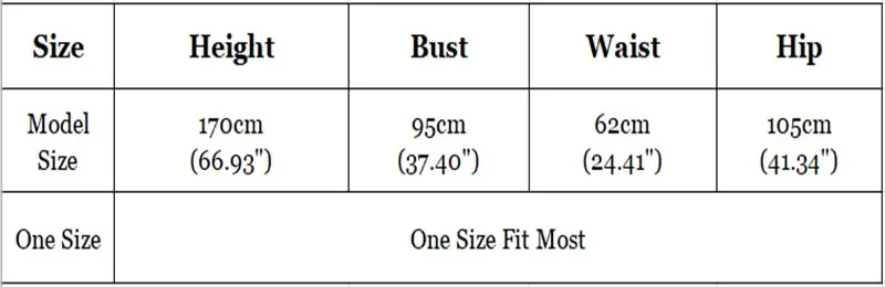 Размеры рост, обхват груди, обхват талии, обхват бедер Размер модели 170 см 95 см 62 см 105 см Инструкции по стирке Стирка при температуре не выше 30, не использовать отбеливатель, сушить в подвешенном состоянии, не гладить, не подвергать химической чистке и т. Д.