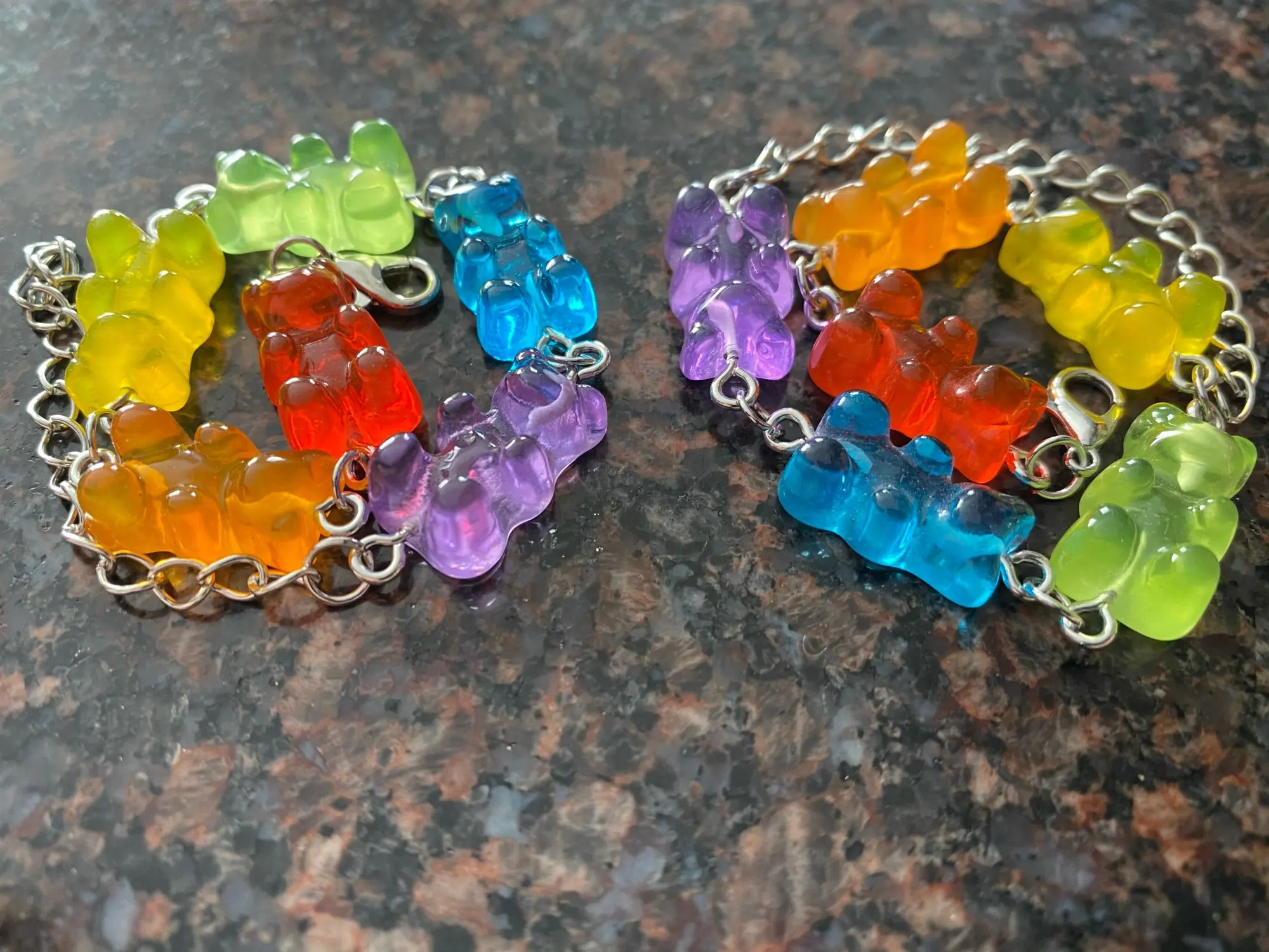 Браслет с милыми мармеладными медведем, цепочка из нержавеющей стали, подвеска, браслеты для женщин, мужчин, ювелирные изделия на запястье, подарок на день рождения для девочек