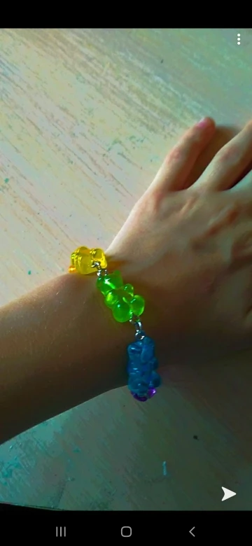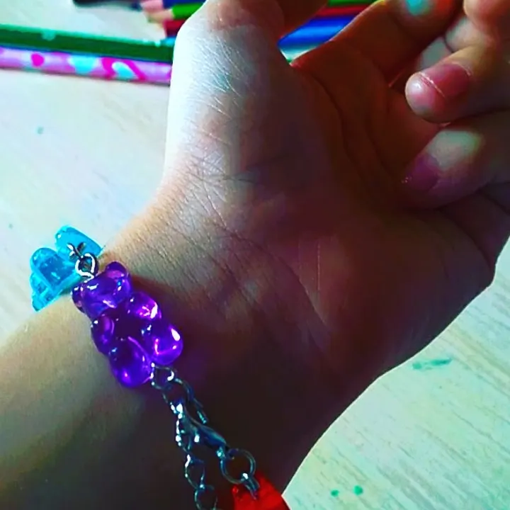 Дочка довольна, главное ей понравилось. Но пришлось снять одного медведя иначе браслет слишком велик на детскую ручку.