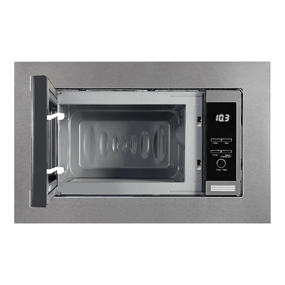 Открывание дверцы кнопка Нижний гриль нет Автоматическая разморозка да Дверца навесная Стиль hi–Tech Блокировка от детей да Дисплей да Звуковой сигнал отключения да Размер ниши (ВхШхГ) 36,5x56,8x29,3 см Переключатели кнопочные Страна-производитель Китай Тип управления электронное Высота 37.6 см Цвет корпуса серебристый Вертел нет Вес кг 12.5 кг Внутреннее покрытие камеры нерж. сталь Гарантия 12 мес Глубина 31.3 см Гриль нет Конвекция нет Мощность микроволн 700 Вт Объем 20 лВНЕШНИЙ ВИД ТОВАРА