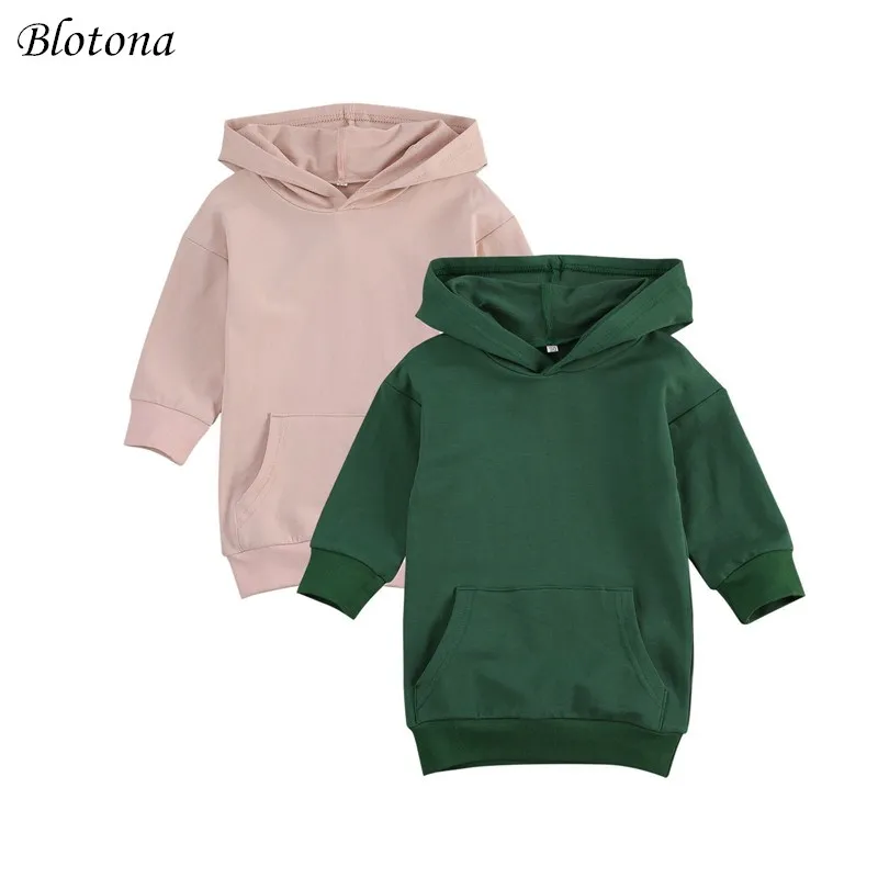 Платье-Свитер для маленьких девочек Blotona, с длинным рукавом, однотонный пуловер с карманом, теплый топ для детей, Осень-зима От 1 до 5 лет