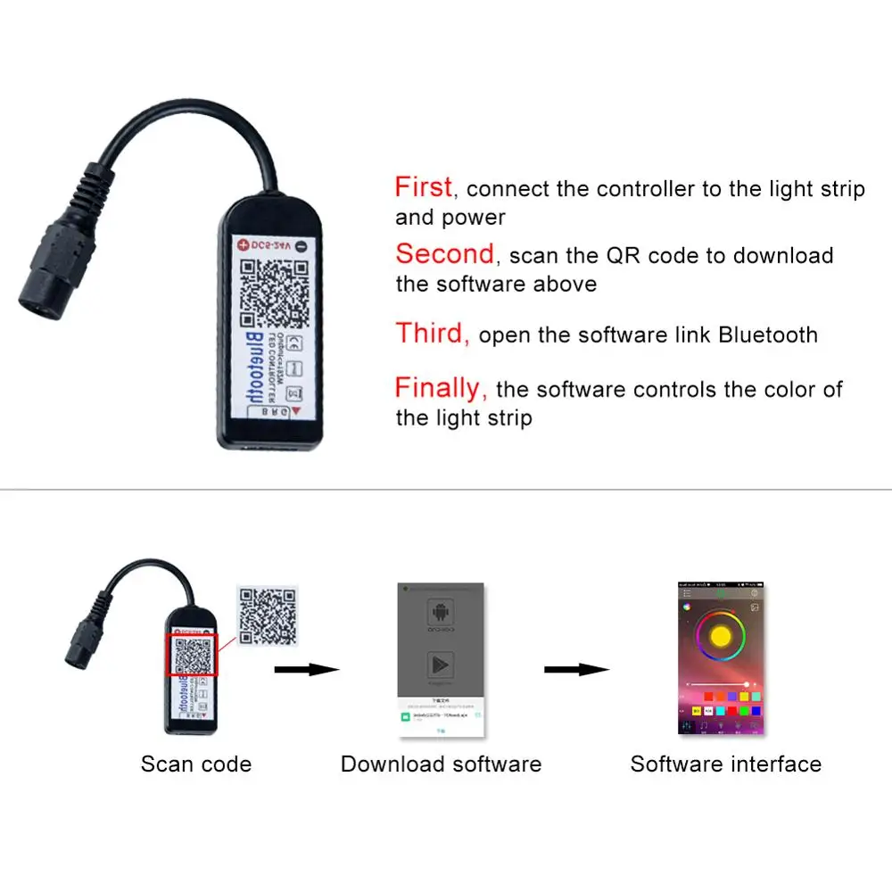 Светодиодная лента, Bluetooth-контроллер, RGB 12 В, 5 м, 60 светодиодов