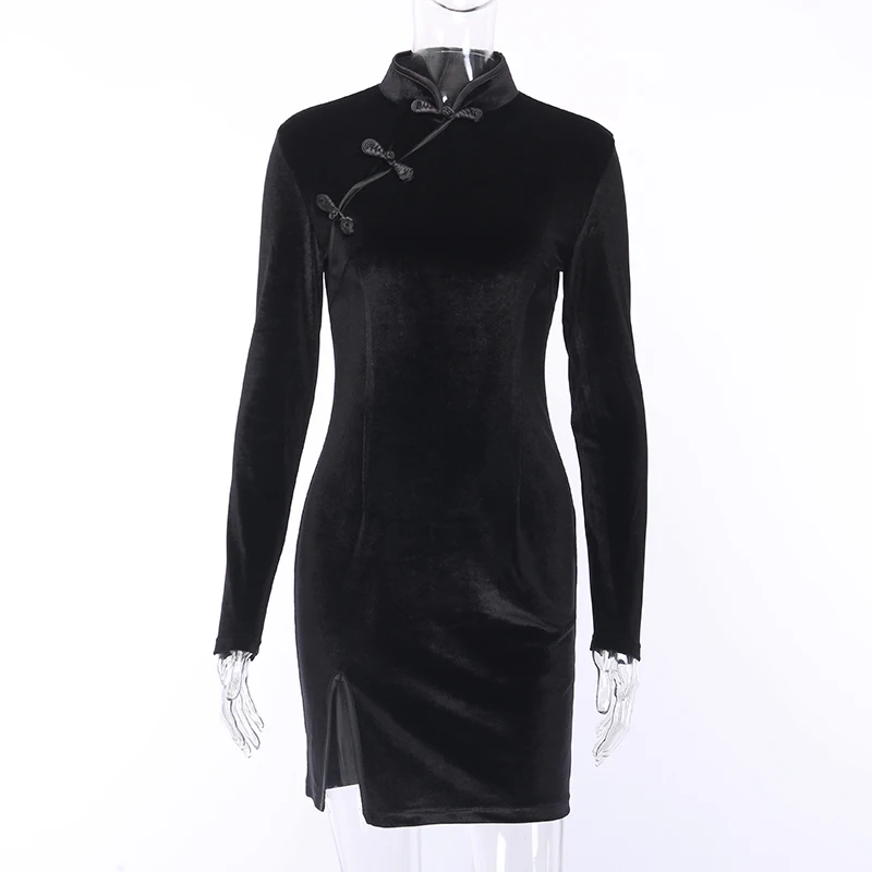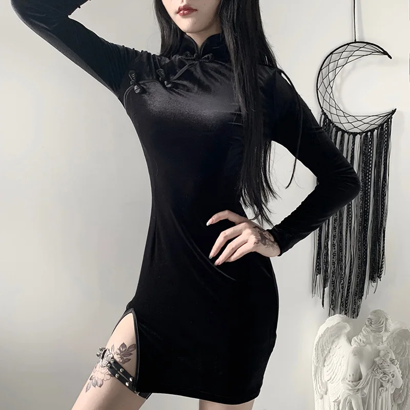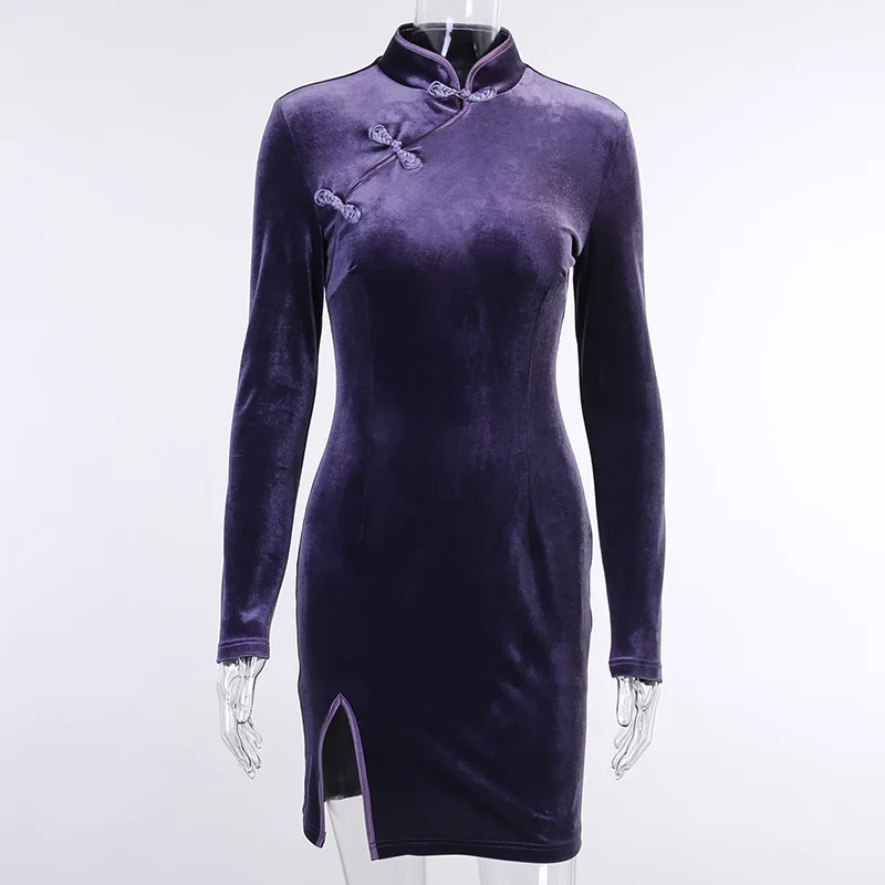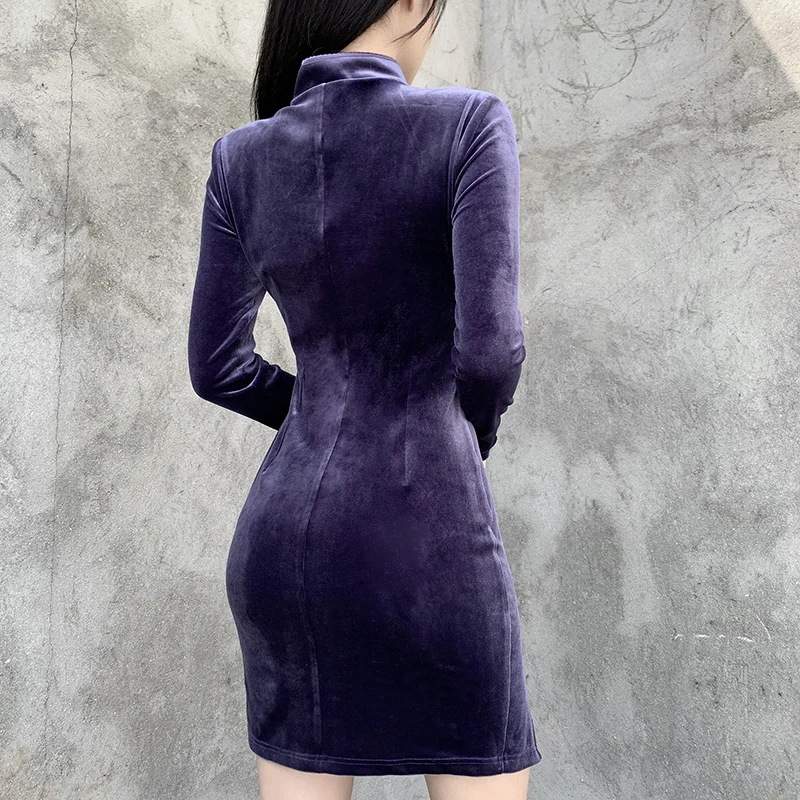 InsDoit женское винтажное элегантное фиолетовое готическое облегающее мини-платье с длинным рукавом и разрезом, вечерние платья с высокой талией