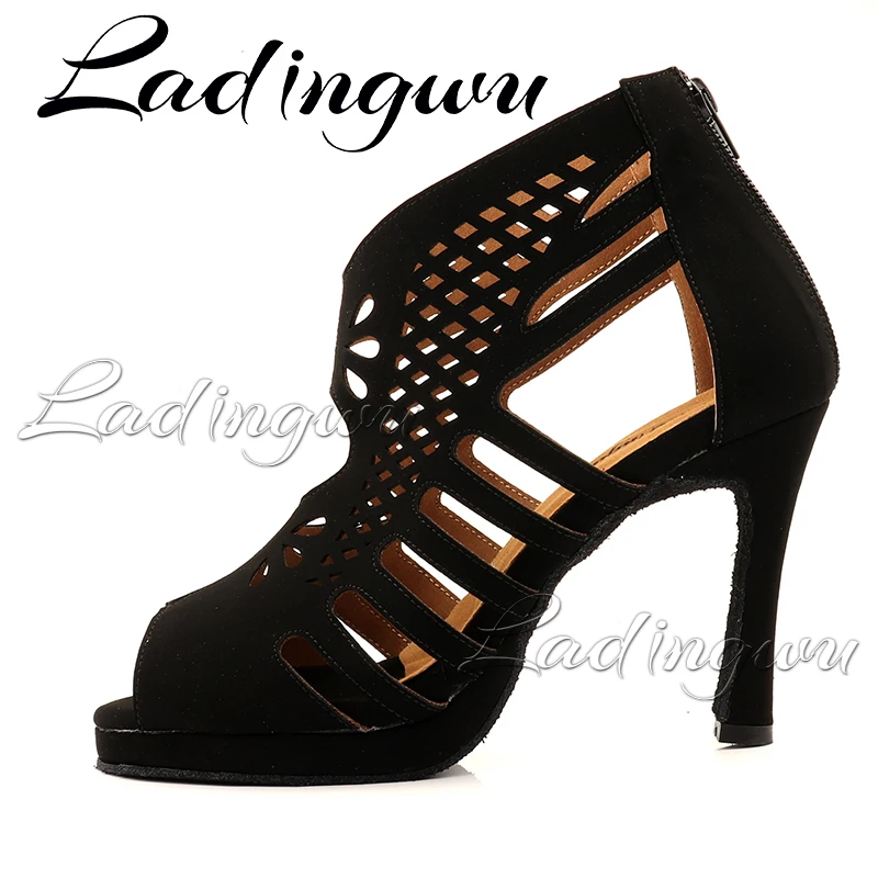 Женские ботинки для латинских танцев Ladingwu, черные ботинки на мя...