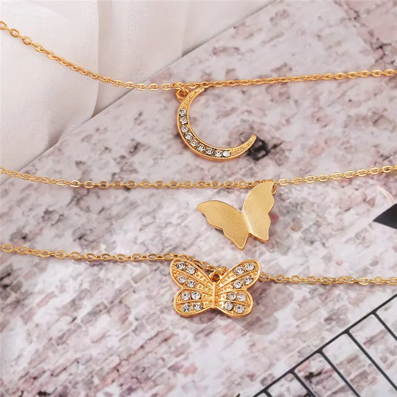 Темпераментная многослойная подвеска Стразы с бабочкой ожерелье юве...
