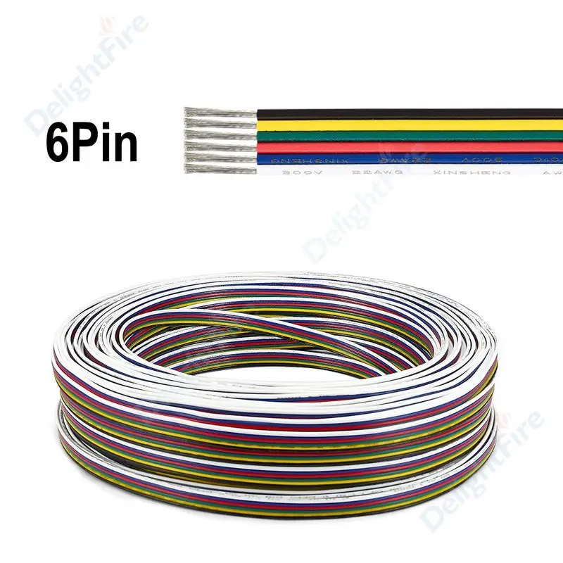 6-контактный изоляционный провод из луженой меди, ПВХ-кабель 22AWG 510203050 м, электрический провод для RGBW CCT, контроллер модули освещения светодиодных лент