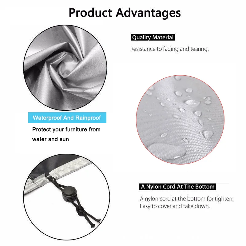 * Тип: чехол для мебели* Форма: прямоугольник* Цвет: серебристый, внешний, черный, внутренний* Материал: водонепроницаемое ПВХ покрытие* Размер: необязательно* Посылка входит:-1 чехол для мебели1 сумкаПорядок измерения:Длина X Ширина X высотаДлина X Глубина X высотаШирина x Глубина x высота* Примечание-Пожалуйста, сообщите нам желаемый размер. Вы можете оставить нам сообщение в примечаниях Paypal или по электронной почте.242x162x100 см/95,27x63,77x39,37 дюйма308x138x89 см/121.25x54.33x35.03inch213x132x74 см/83,85x51,96x29,13 дюйма180x120x74 см/70.86x47.24x29.13inch126x126x74 см/49,6x49,6x29,13 дюйма123x61x72 см/48,42x24,01x28,34 дюйма115x115x70 см/45,27x45,27x27,55 дюйма* Особенность:1. Полиэфирная ткань высочайшего качества была протестирована на водонепроницаемость и ультрафиолетовые лучи, а шнурок можно затянуть.2. Круглый низ на шнурке с проволочным замком для повышения безопасности.3. Предназначен для защиты от экстремальных температур, мороза, снега, дождя и ультрафиолетовых лучей.4. Защищает от дождя, снега, пыли и помёта птиц.5. Помогает продлить срок службы садовой мебели.6. Защита окружающей среды и простота использования.* Примечание:-Из-за ручного измерения допускается погрешность в 1-3 см.