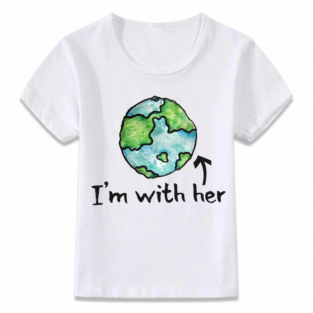 Детская одежда футболка с надписью Earth Day I'm with Her для мальчиков и девочек, рубашки для малышей oal184