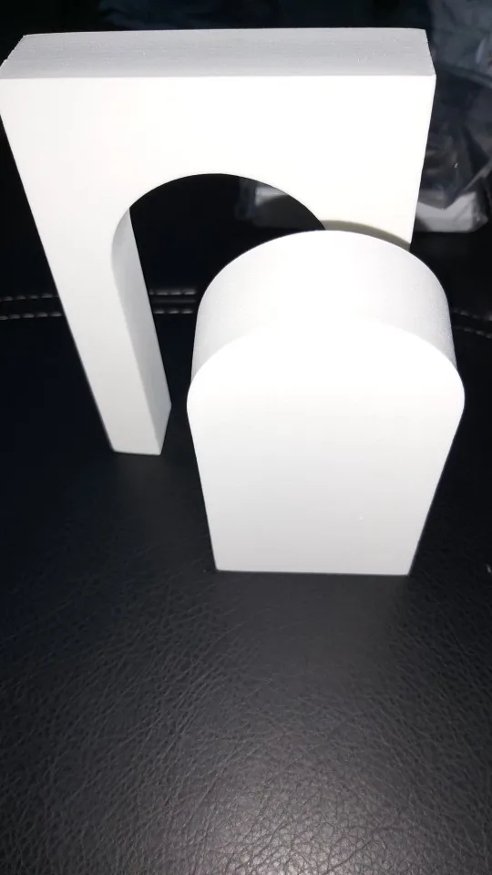 Фигуры из вспененного материала, они не хрупкие, но хорошо «запоминают» неправильные изгибы и вмятины. К сожалению продавец не озаботился нормальной упаковкой и эта конструкция прибыла непригодной для использования. Цвет у них не белый, а скорее грязно-бело-зелёный.